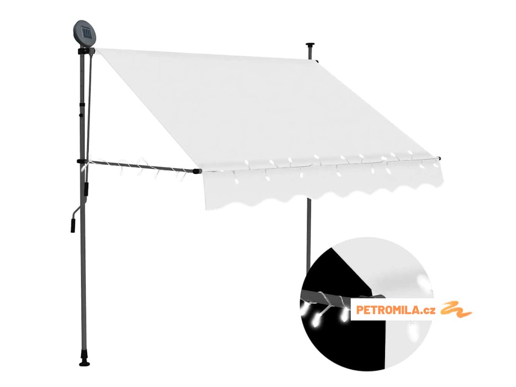 Ručně zatahovací markýza s LED světlem 150 cm krémová