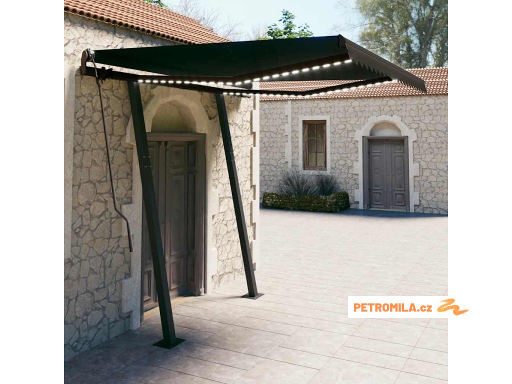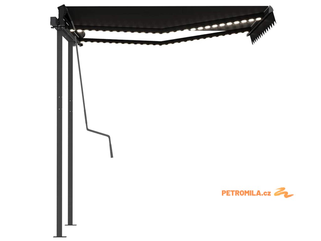 Tato markýza má hliníkový rám s práškovým nástřikem, který nerezaví, je lehký, ale přitom je mimořádně robustní. Pevný železný sloupek jí dodává na stabilitě. Zatahovací stříška je zhotovená z vysokohustotního polyesteru potaženého vrstvou PU, výborně tedy vzdoruje vodě i UV záření. Úhel a výšku si můžete navíc nastavit dle svých konkrétních potřeb. Markýzu snadno roztáhnete a zatáhnete pomocí dlouhé ruční kliky. A co víc, solární LED světla poskytují energeticky úsporné osvětlení v noci.