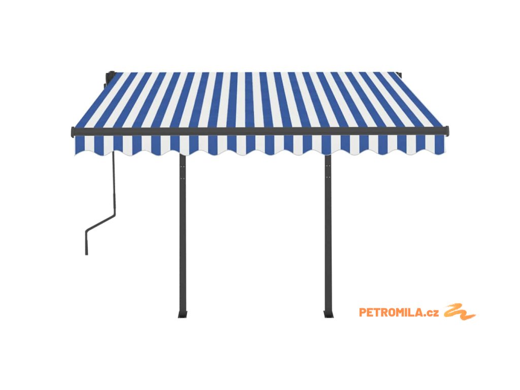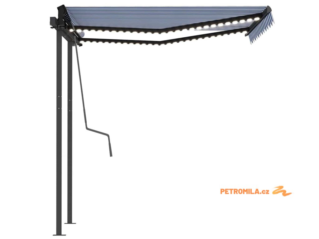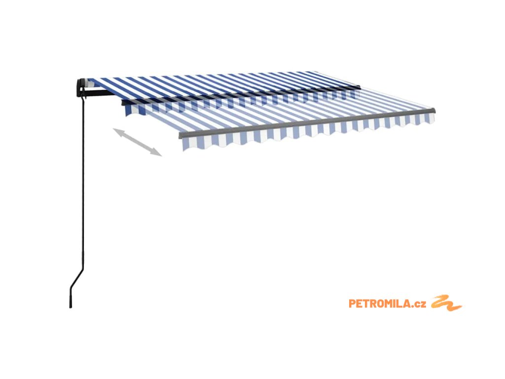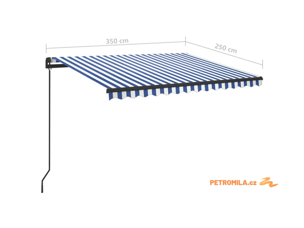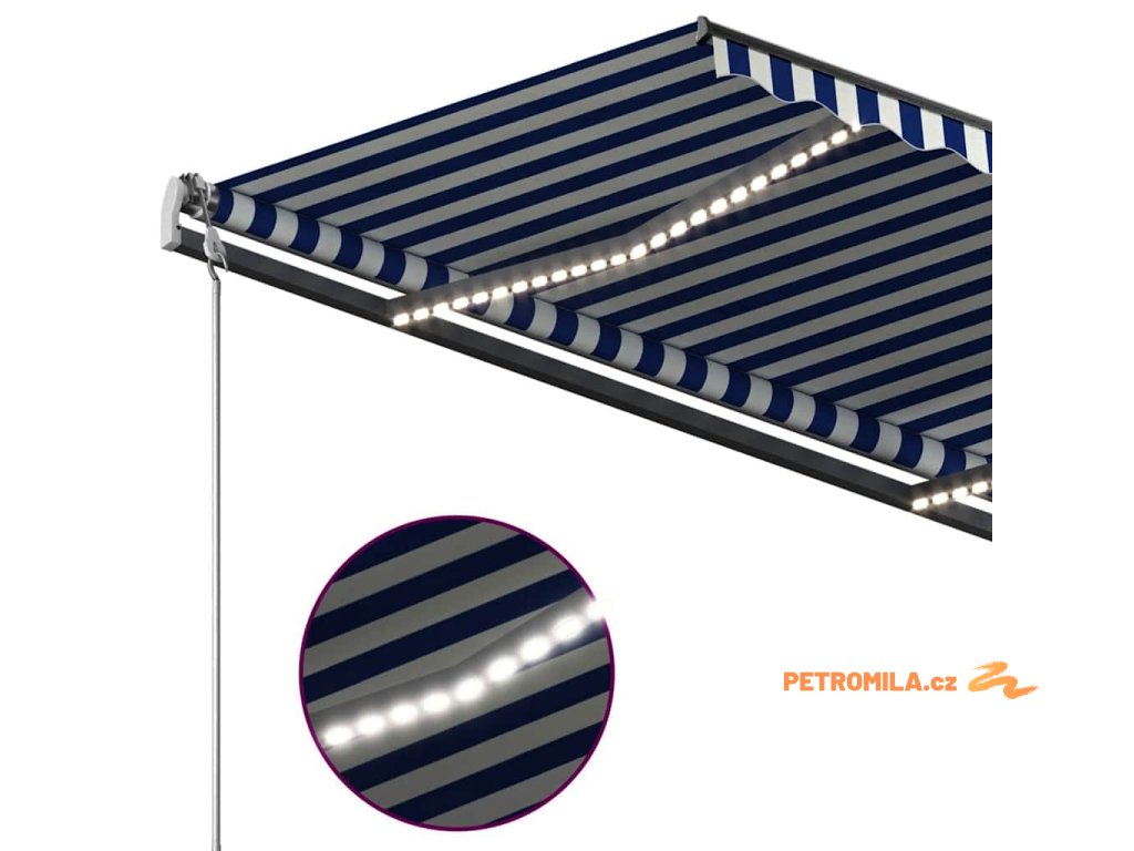 Ručně zatahovací markýza s LED světlem 3,5 x 2,5 m modrobílá