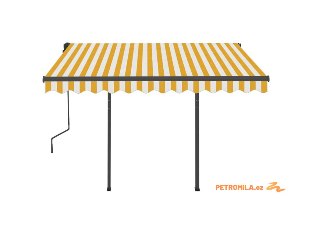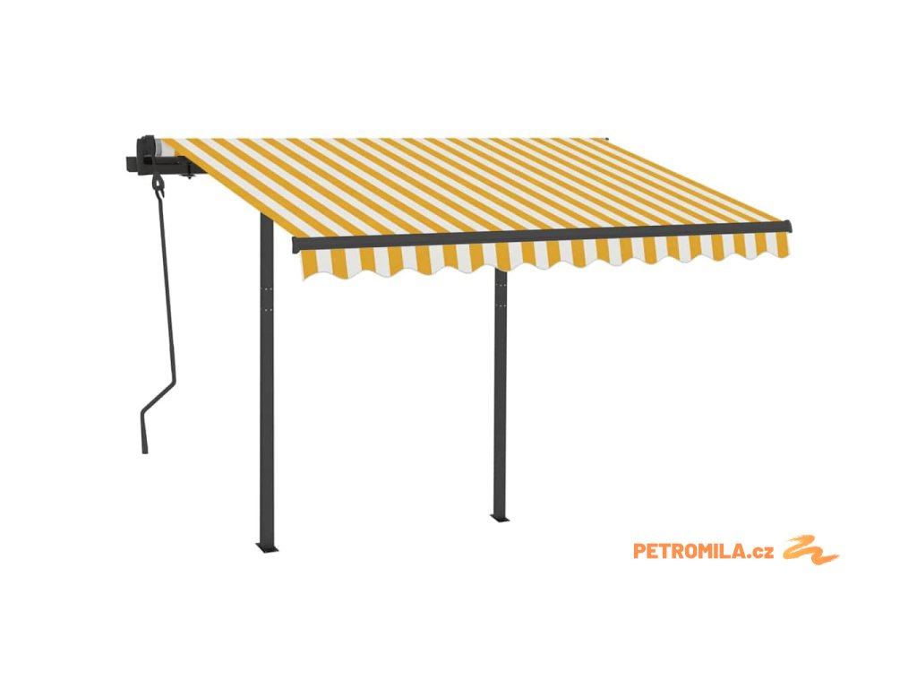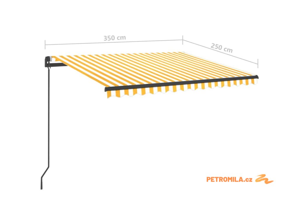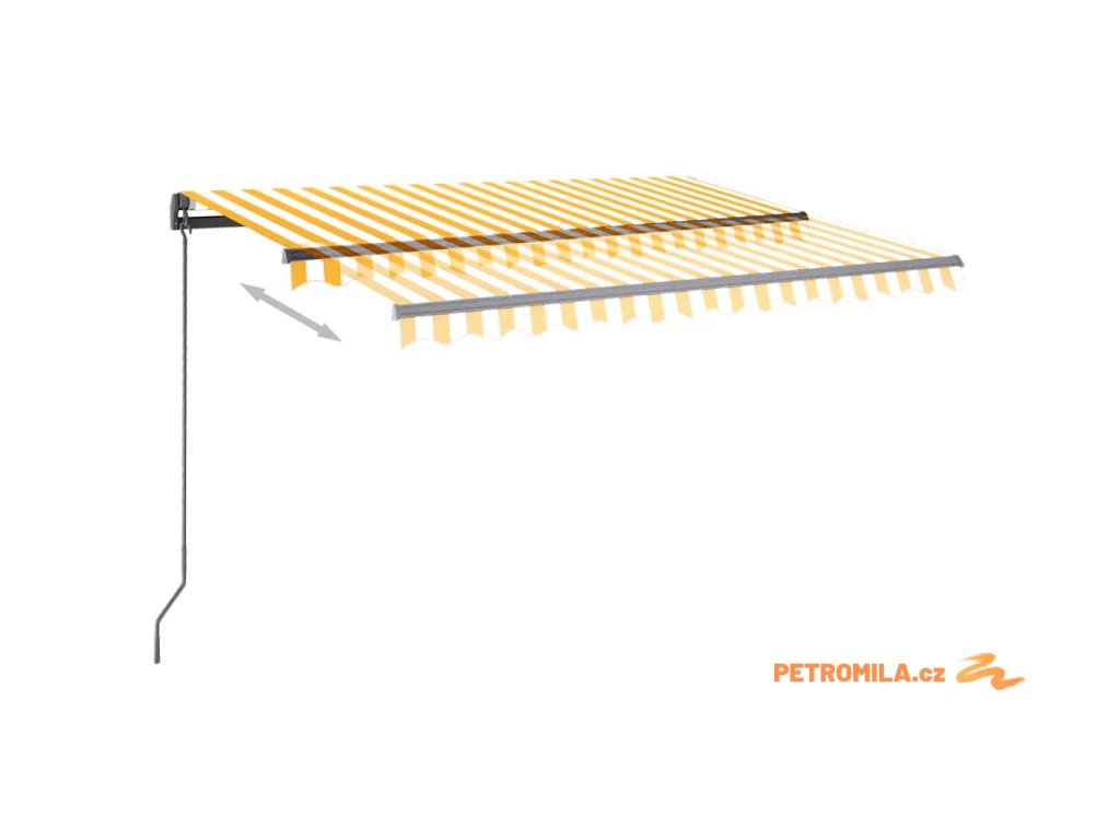 Před montáží a použitím výrobku je třeba si přečíst návod k obsluze. Tento návod si uschovejte pro budoucí použití. Tento výrobek je určen pouze pro venkovní a domácí použití jako ochrana před sluncem nebo dekorace. Nikdy jej nepoužívejte k jiným účelům ani výrobek neupravujte. Nepoužívejte jej na místech, kde dochází k vibracím, impulzům neob vysokým teplotám, například na stěnách v blízkosti pecí. Při montáži a nastavování markýzy vždy používejte vhodné osobní ochranné pomůcky. Při práci ve velkých výškách hrozí nebezpečí pádu, používejte vhodnou ochranu proti pádu. Při montáži buďte opatrní, může hrozit nebezpečí rozdrcení nebo useknutí. NEODSTRAŇUJTE bezpečnostní fólie. Tyto fólie lze odstranit až po dokončení všech montážních kroků, po upevnění všech šroubů a po připevnění výrobku ke stěně. Při předčasném odstranění fólie může dojít k vážnému zranění. Tento výrobek a jeho upevňovací díly jsou vhodné pouze pro instalaci na hladkou cementovou zeď nebo stabilní neomítnuté zdivo. Pokud stěna/zdivo vykazuje trhliny, je třeba se poradit s odborníkem. Pokud má vaše budova vnější plášť (např. izolaci, dvojitou cihlovou stěnu nebo cihlový obklad), měl by instalaci provést odborník. Nikdy neinstalujte na vysokých a větrných místech, protože by sluneční clona mohla spadnout a zranit osoby. Markýzu neinstalujte, pokud zjistíte, že jsou některé díly poškozené nebo zcela chybí. Vnější žaluzie se musí stáhnout v případě, že je rychlost větru vyšší než 28 km/h. Před otevřením markýzy se ujistěte, že jsou všechny držáky bezpečně připevněny ke stěnovým hmoždinkám a všechny šrouby jsou řádně dotaženy. VŽDY markýzu zavírejte při silném nebo prudkém větru, dešti a v době, kdy ji nepoužíváte. V opačném případě může dojít ke zranění osob a/nebo poškození majetku. Také výsuvná ramena jsou pod vysokým napětím a mohou způsobit vážné poškození nebo zranění. Děti by měly být pod dohledem, aby se zajistilo, že si se zařízením nebudou hrát. Nepoužívejte jej, pokud je nutná oprava nebo seřízení. Nepoužívejte markýzu, pokud se v její blízkosti provádí údržba, například mytí oken. Provoz v mrazivých podmínkách může markýzu poškodit. Nepokládejte na rám těžké věci, protože by mohly spadnout a způsobit poškození. Příliš pevné a příliš volné upevňovací prvky by mohly způsobit poškození výrobku nebo být nebezpečné pro osoby. Upozornění: Tkanina by se během provozu neměla prověšovat, jinak se na ní bude hromadit voda. Tkaninu nerozbalujte a neperte. Pokud potřebujete látku vyměnit, obraťte se s žádostí o pomoc na odborníky. Při ovládání ručního spouštění se zataženou vnější roletou buďte opatrní, protože může dojít k jejímu rychlému pádu v důsledku slabých nebo poškozených pružin. Nebezpečí! Silná pružina. NEODSTRAŇUJTE toto lano, dokud nedokončíte všechny kroky montáže, všechny šrouby nejsou utažené a předmět není připevněn ke zdi! Varování! Při povolování ramen dbejte opatrnosti, neboť jsou pod mechanickým tlakem! Náhlé uvolnění skládacího ramene může způsobit zranění. Varování: Před použitím výrobku si pečlivě přečtěte návod k obsluze. Varování: Používání při teplotách pod bodem mrazu může produkt poškodit. Externí použití v budovách a jiných stavbách.