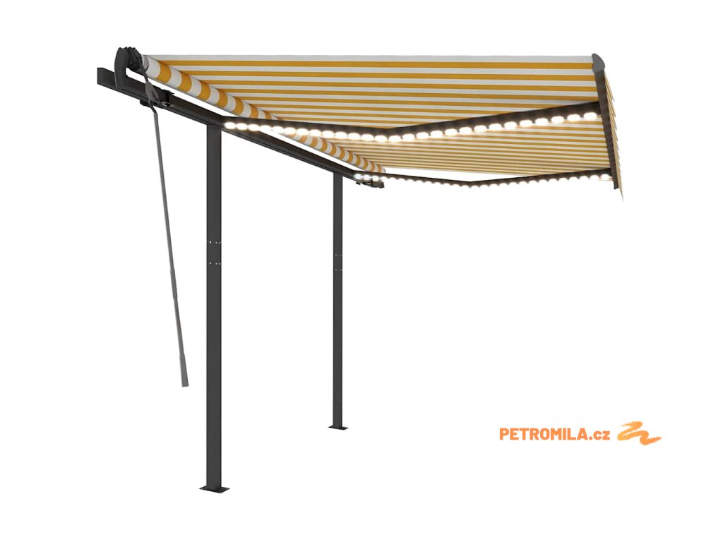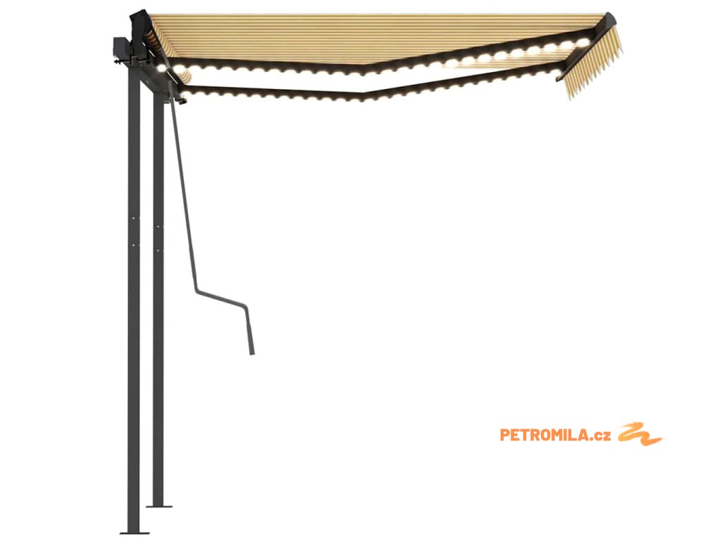Tato markýza má hliníkový rám s práškovým nástřikem, který nerezaví, je lehký, ale přitom je mimořádně robustní. Pevný železný sloupek jí dodává na stabilitě. Zatahovací stříška je zhotovená z vysokohustotního polyesteru potaženého vrstvou PU, výborně tedy vzdoruje vodě i UV záření. Úhel a výšku si můžete navíc nastavit dle svých konkrétních potřeb. Markýzu snadno roztáhnete a zatáhnete pomocí dlouhé ruční kliky. A co víc, solární LED světla poskytují energeticky úsporné osvětlení v noci.