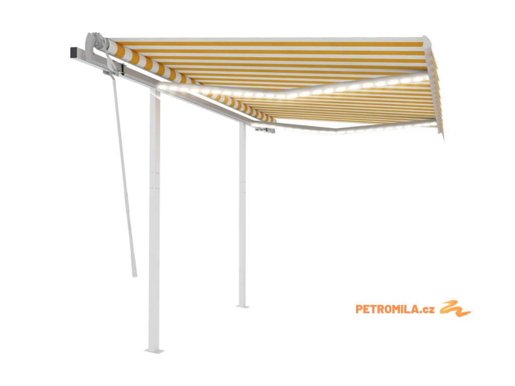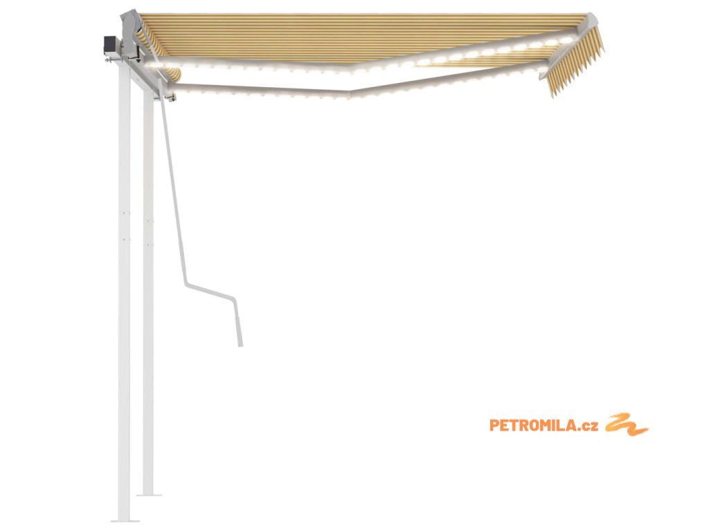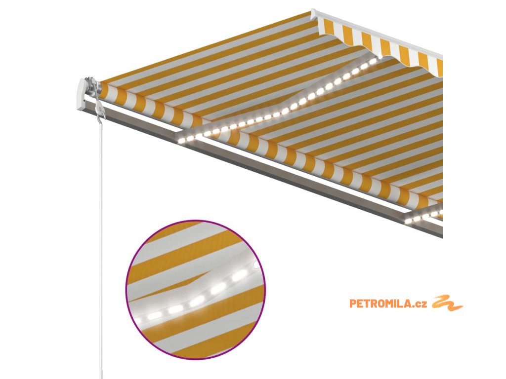 Ručně zatahovací markýza s LED světlem 3 x 2,5 m žlutobílá