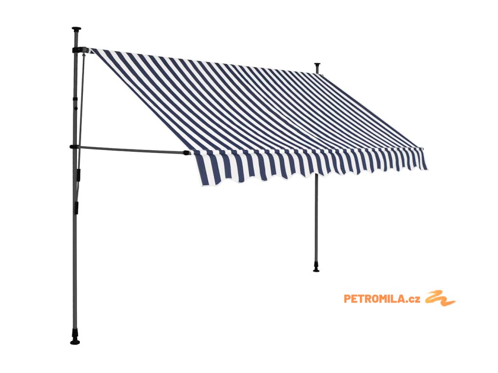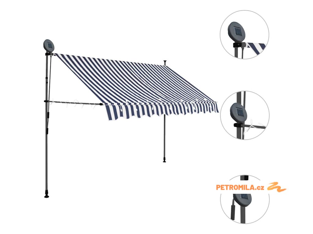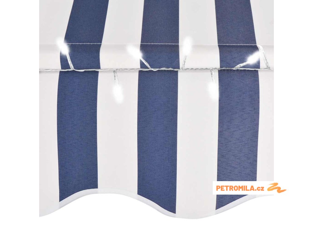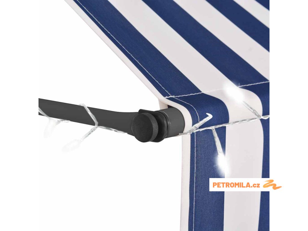 Ručně zatahovací markýza s LED světlem 300 cm modrobílá