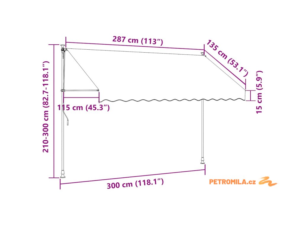 Markýza je vyrobená z kvalitního polyesteru potaženého vrstvou PU, a proto odpuzuje vodu i špínu a výborně vzdoruje klimatickým vlivům a UV záření. Silný ocelový rám jí dodává na pevnosti a prodlužuje její životnost. Polyesterová stříška se snadno čistí, lze ji totiž sejmout a oprat. Markýzu je možné zatahovat a roztahovat pomocí ruční kliky. Nastavit můžete i její výšku a sklon. Solárně napájená LED světla vám navíc v noci poskytnou osvětlení. Sestavení markýzy je jednoduché.