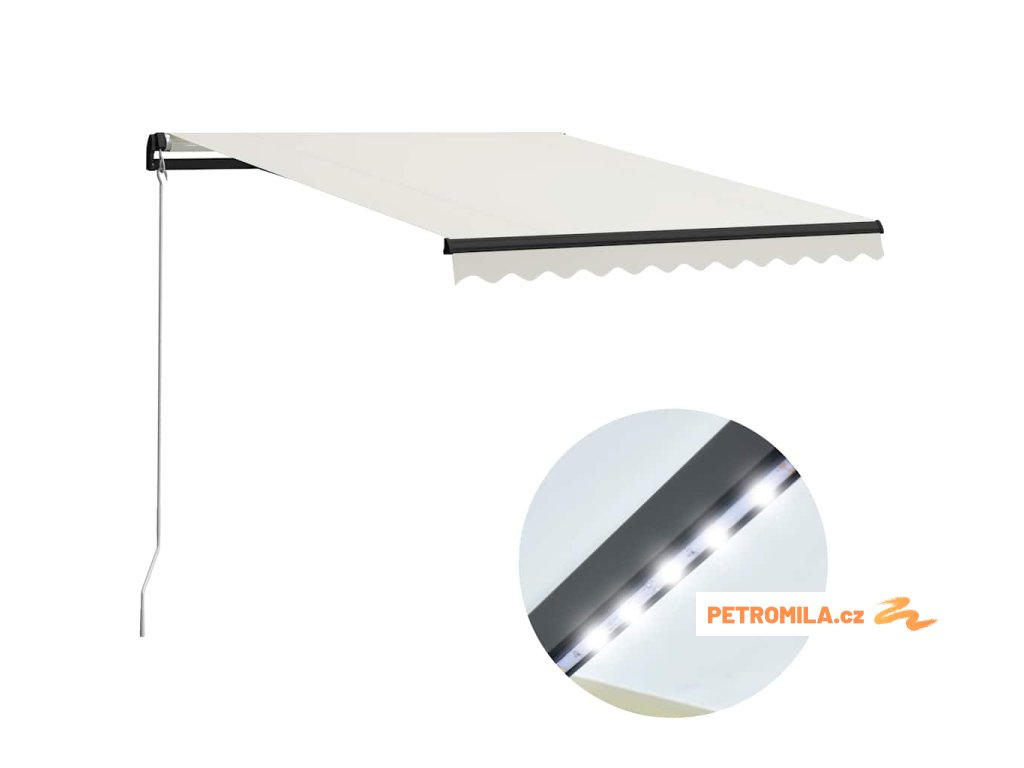 Zahradní markýza má hliníkový rám s práškovým nástřikem, který nerezaví, je lehký, ale přitom tvoří velice pevnou konstrukci. Do jisté míry dokáže odolávat i větru. Zatahovací stříška je zhotovená z vysokohustotního polyesteru potaženého vrstvou PU, výborně tedy vzdoruje vodě i UV záření a nebledne. Úhel a výšku si můžete nastavit dle svých konkrétních potřeb. Markýzu snadno roztáhnete a zatáhnete pomocí dlouhé ruční kliky. K ramenu jsou navíc připevněná solární energie napájená LED světla, která v noci vyzařují energeticky úsporné osvětlení.