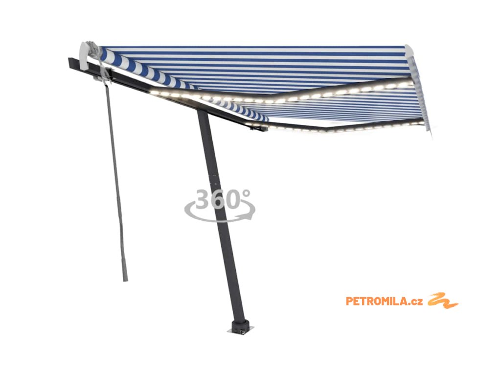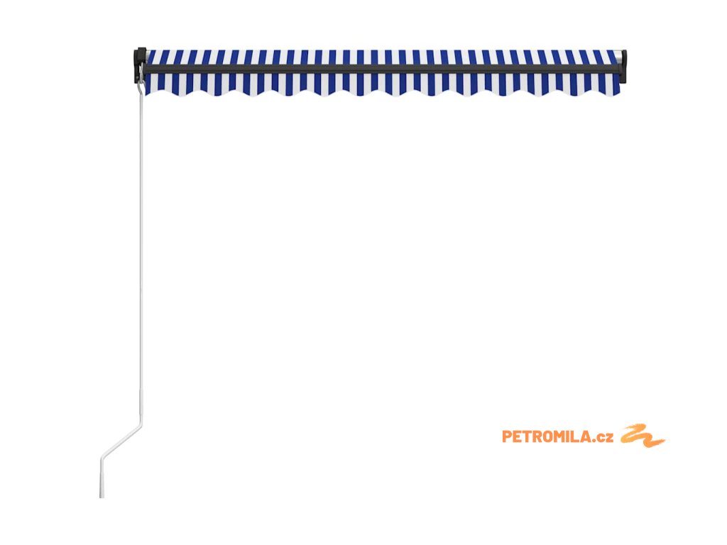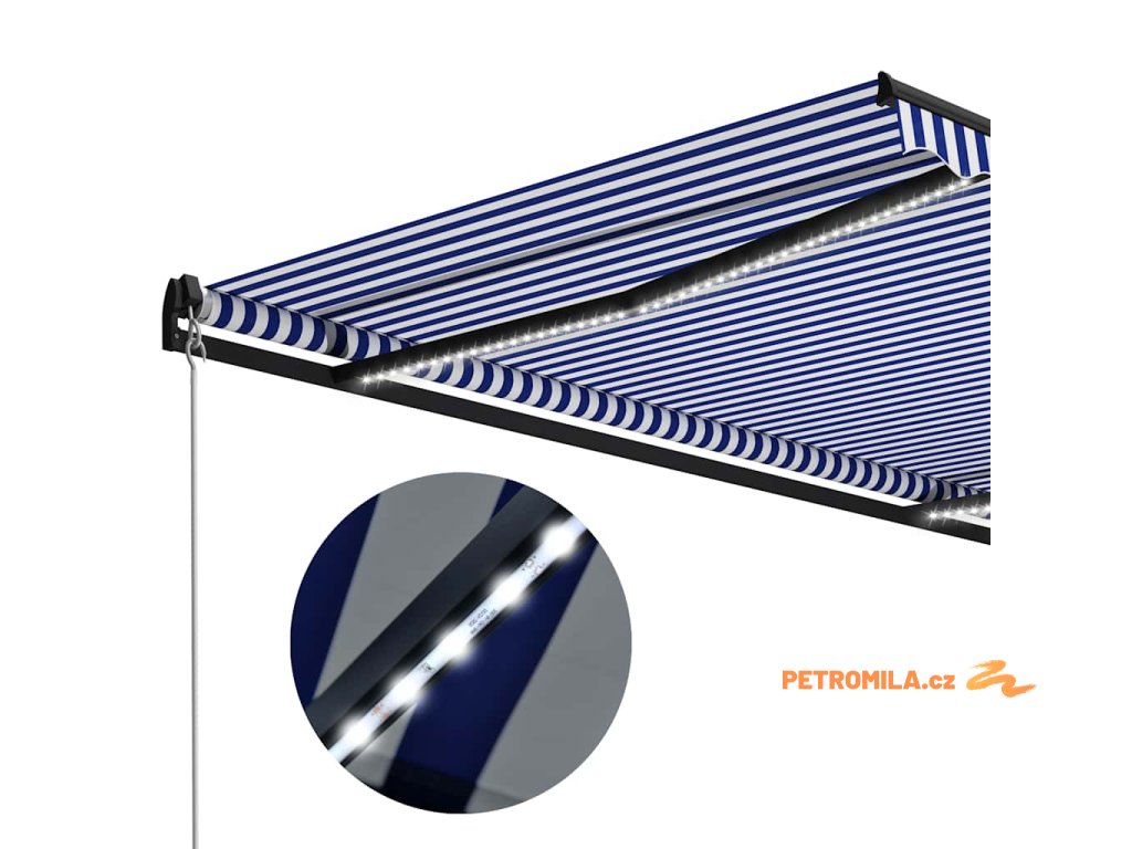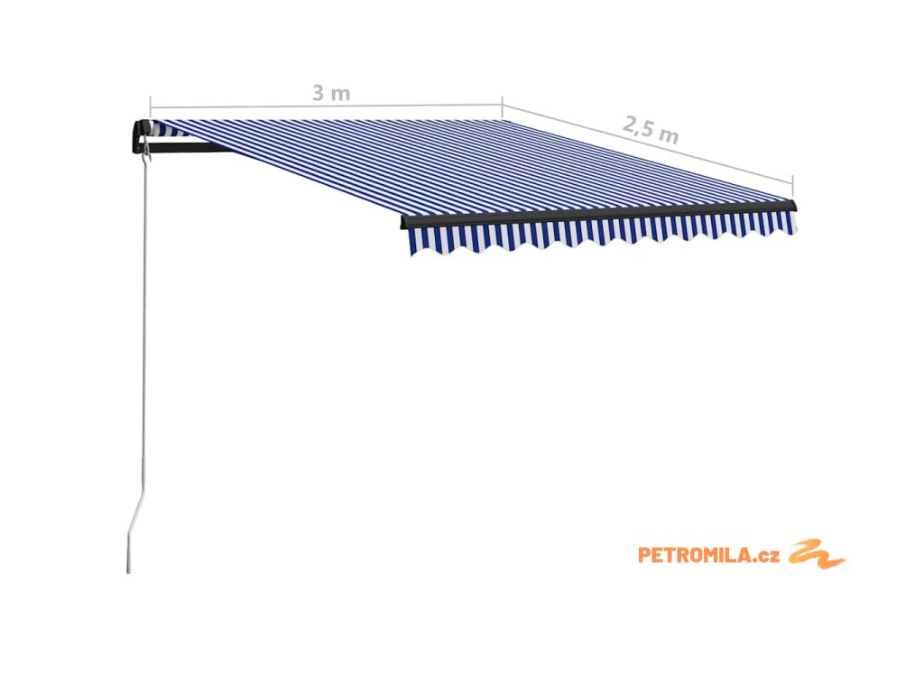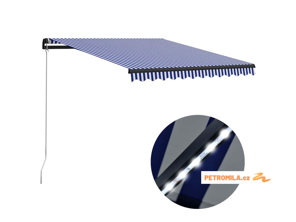 Ručně zatahovací markýza s LED světlem 300x250 cm modrá a bílá