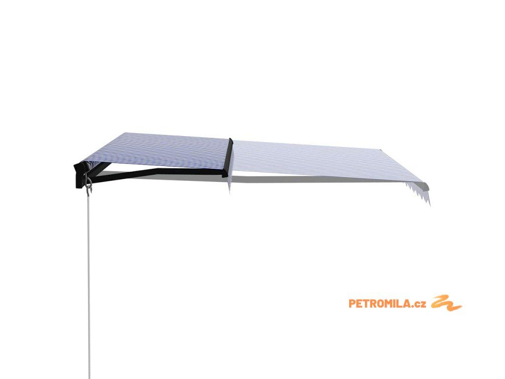 Ručně zatahovací markýza s LED světlem 300x250 cm modrá a bílá