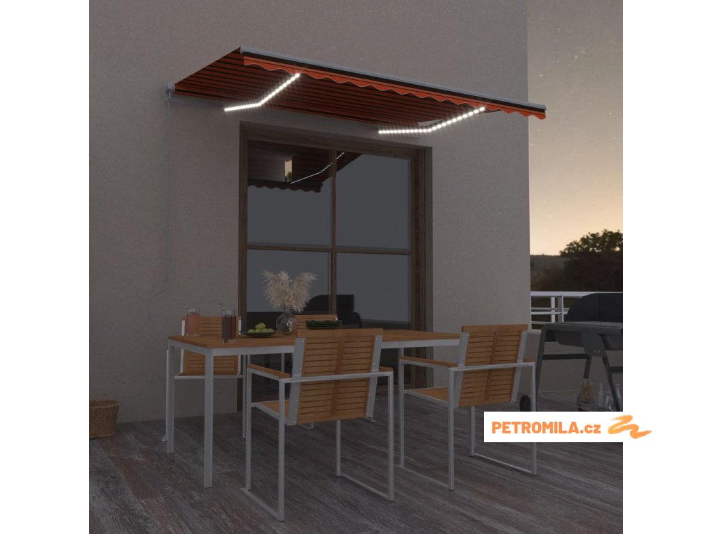 Ručně zatahovací markýza s LED světlem 300x250 cm oranžovohnědá