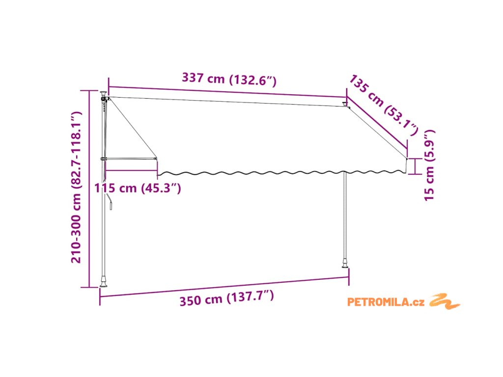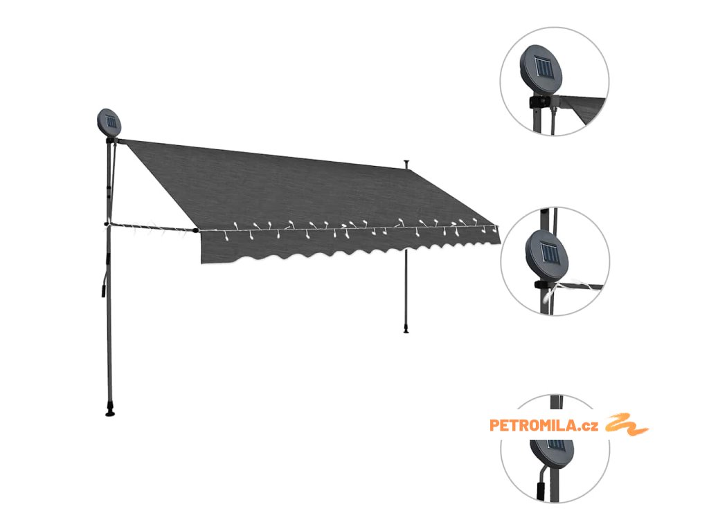 Ručně zatahovací markýza s LED světlem 350 cm antracitová