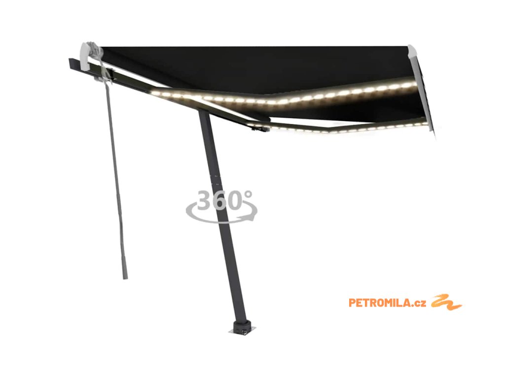 Tato markýza má hliníkový rám s práškovým nástřikem, který nerezaví, je lehký, ale přitom je mimořádně robustní. Zatahovací stříška je zhotovená z vysokohustotního polyesteru potaženého vrstvou PU, výborně tedy vzdoruje vodě i UV záření. Úhel a výšku si můžete navíc nastavit dle svých konkrétních potřeb. Volně stojící markýzu snadno roztáhnete a zatáhnete pomocí dlouhé ruční kliky. A co víc, solární LED světla poskytují energeticky úsporné osvětlení v noci. Robustní základnu lze otáčet o 360 stupňů, čímž se maximálně přizpůsobí vašim potřebám.