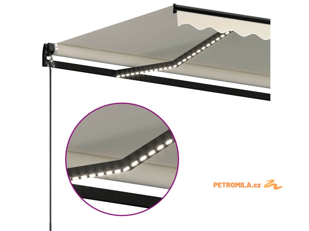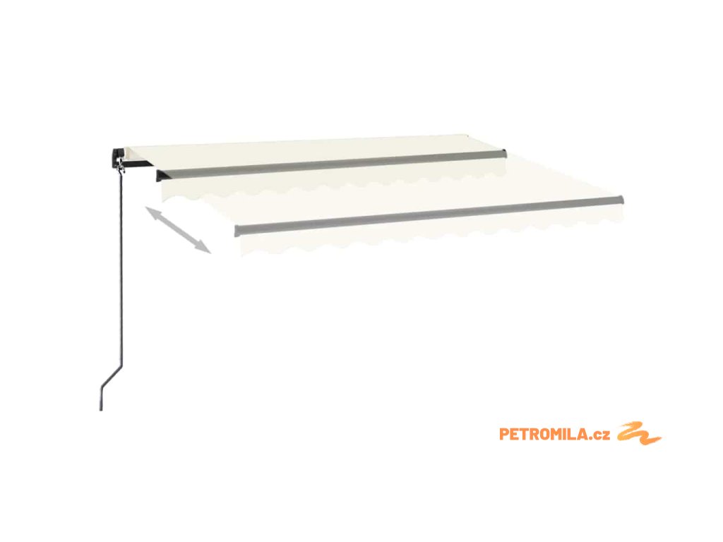 Tato markýza má hliníkový rám s práškovým nástřikem, který nerezaví, je lehký, ale přitom je mimořádně robustní. Zatahovací stříška je zhotovená z vysokohustotního polyesteru potaženého vrstvou PU, výborně tedy vzdoruje vodě i UV záření. Úhel a výšku si můžete navíc nastavit dle svých konkrétních potřeb. Markýzu snadno roztáhnete a zatáhnete pomocí dlouhé ruční kliky. A co víc, solární LED světla poskytují energeticky úsporné osvětlení v noci.