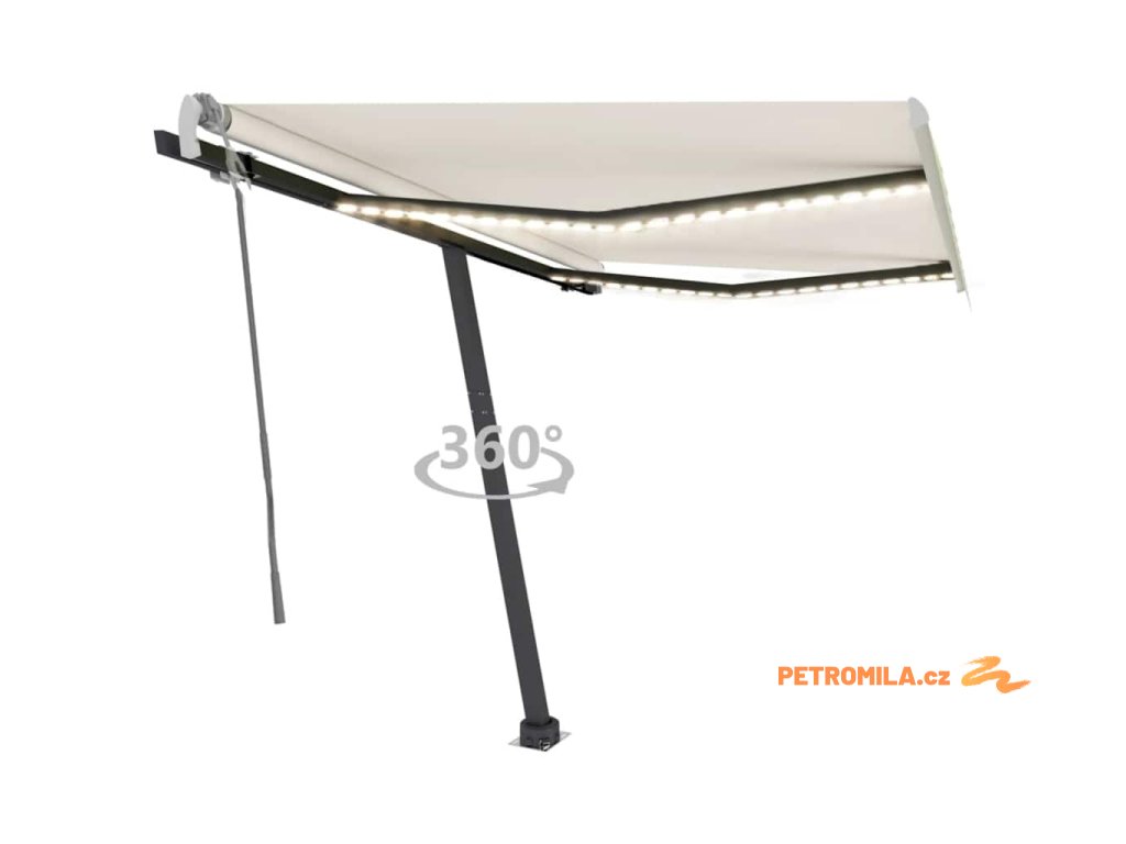 Tato markýza má hliníkový rám s práškovým nástřikem, který nerezaví, je lehký, ale přitom je mimořádně robustní. Zatahovací stříška je zhotovená z vysokohustotního polyesteru potaženého vrstvou PU, výborně tedy vzdoruje vodě i UV záření. Úhel a výšku si můžete navíc nastavit dle svých konkrétních potřeb. Volně stojící markýzu snadno roztáhnete a zatáhnete pomocí dlouhé ruční kliky. A co víc, solární LED světla poskytují energeticky úsporné osvětlení v noci. Robustní základnu lze otáčet o 360 stupňů, čímž se maximálně přizpůsobí vašim potřebám.