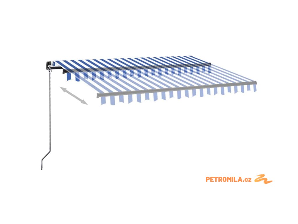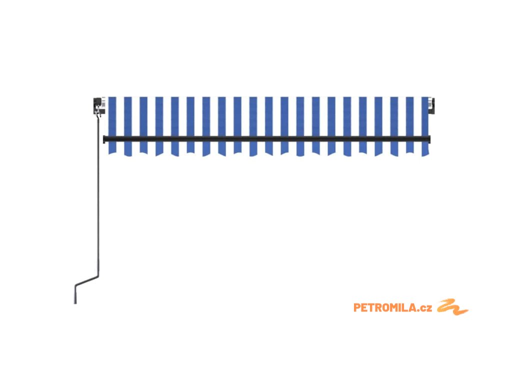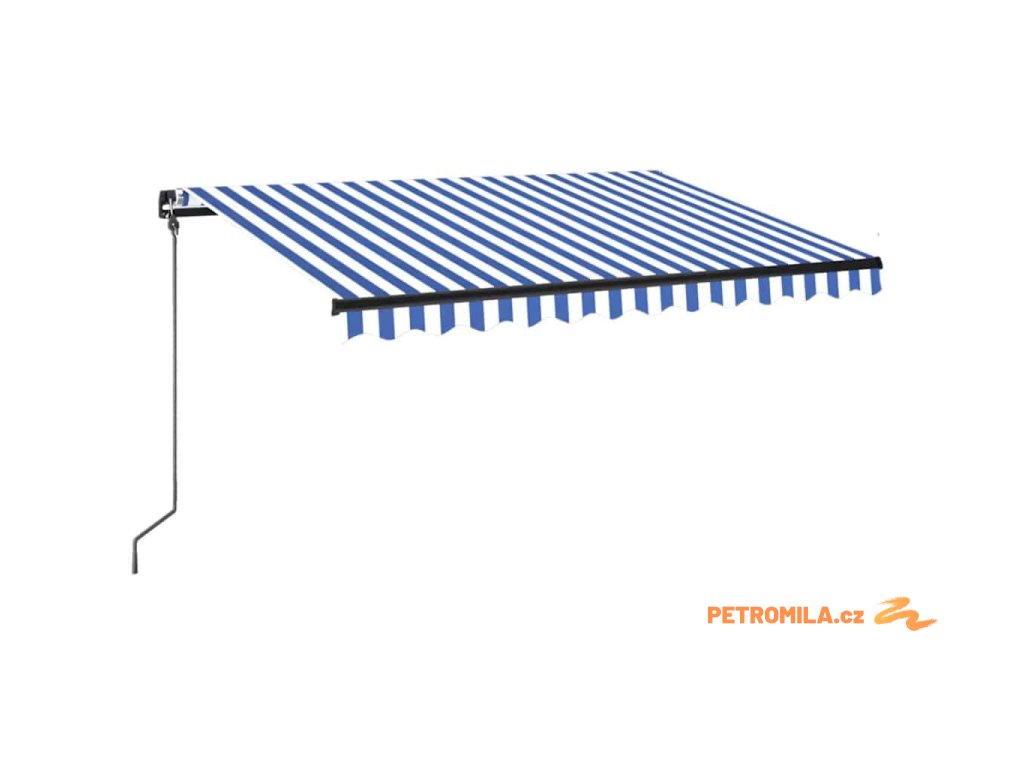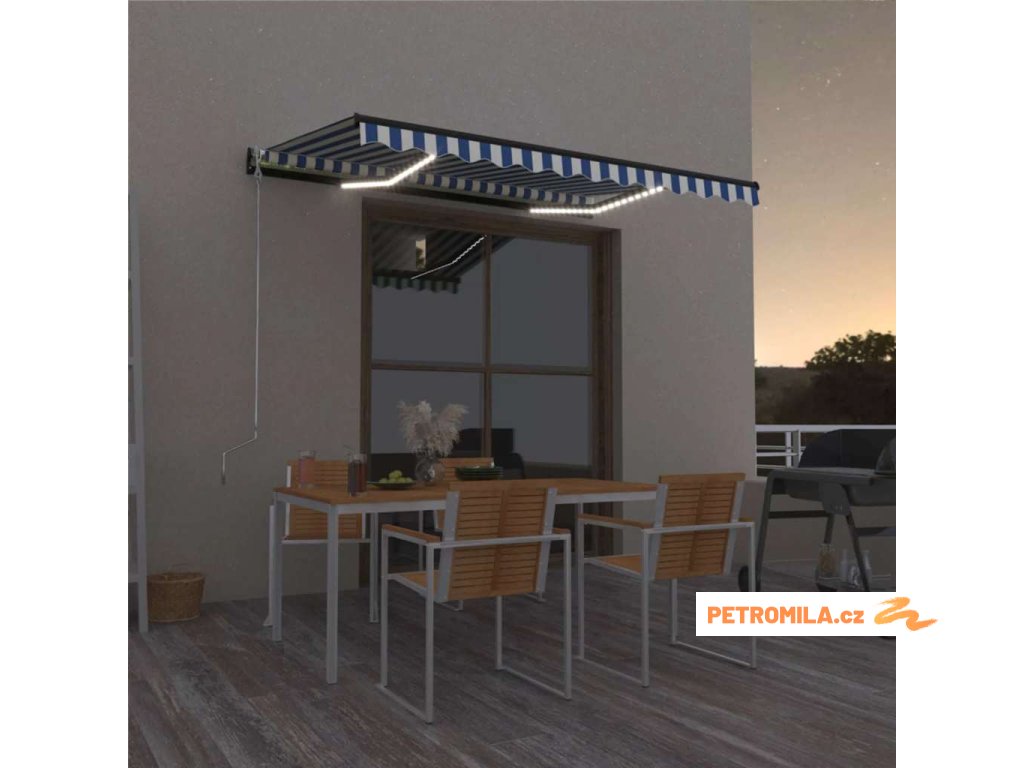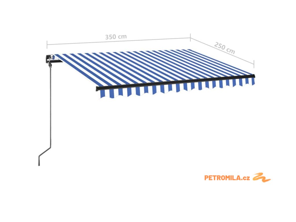 Ručně zatahovací markýza s LED světlem 350 x 250 cm modrobílá