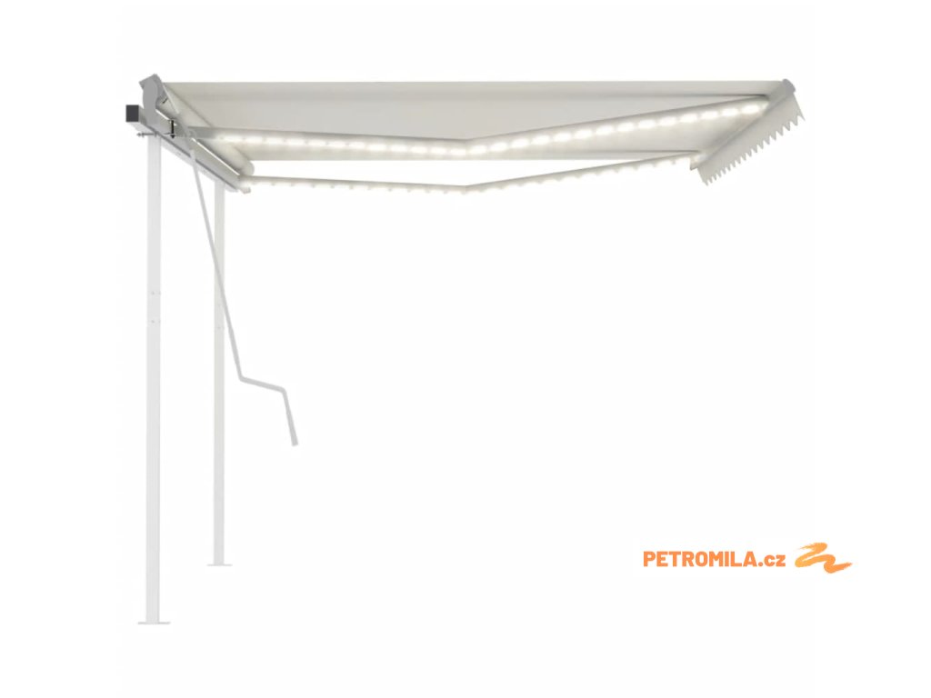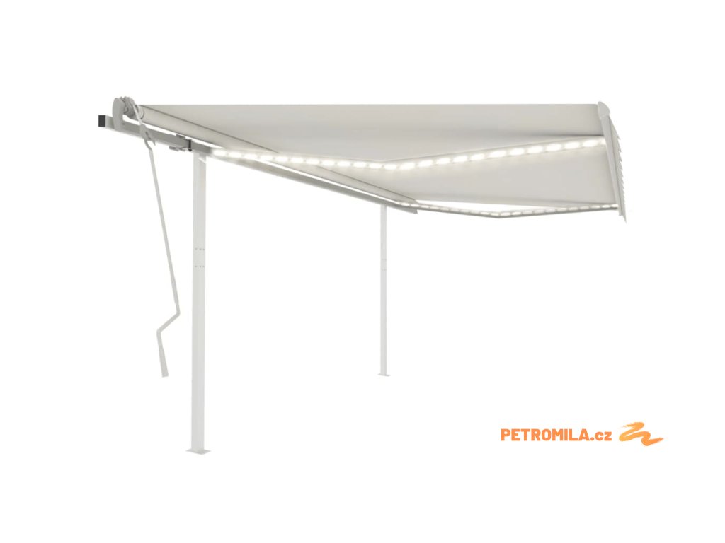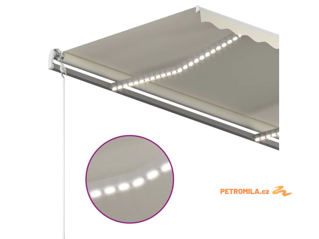 Ručně zatahovací markýza s LED světlem 4 x 3,5 m krémová