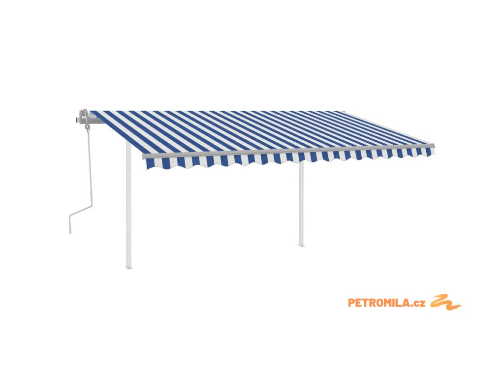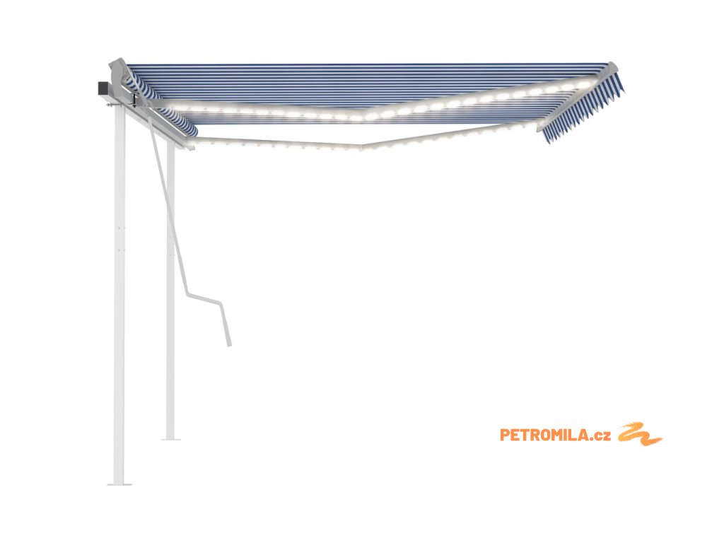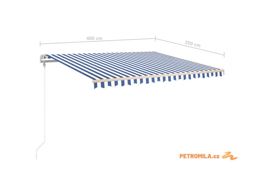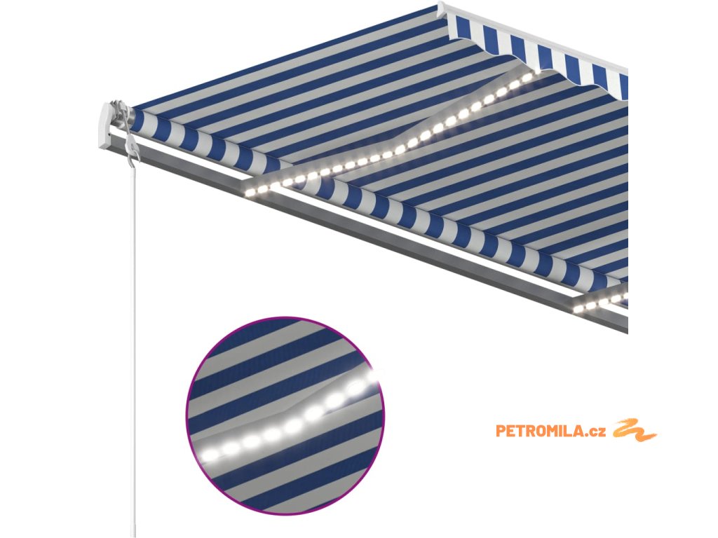 Ručně zatahovací markýza s LED světlem 4 x 3,5 m modrobílá