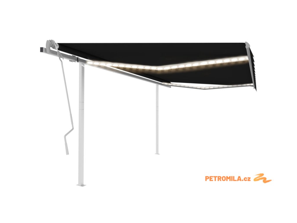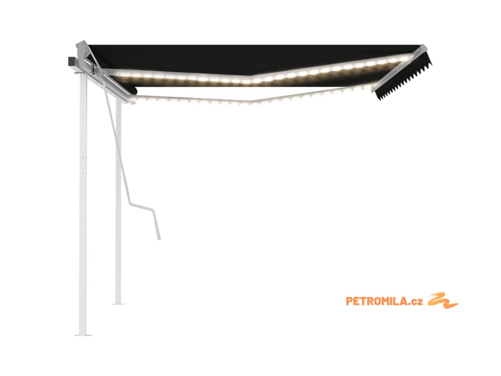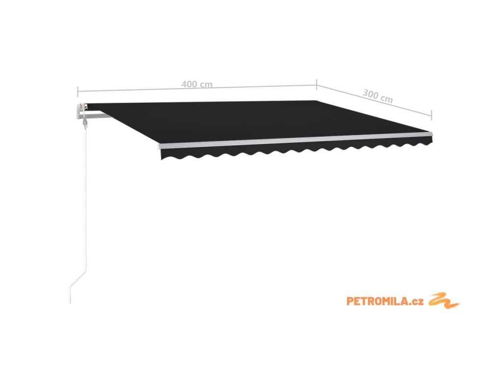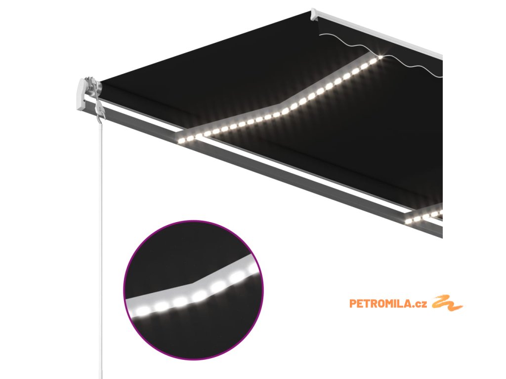 Ručně zatahovací markýza s LED světlem 4 x 3 m antracitová