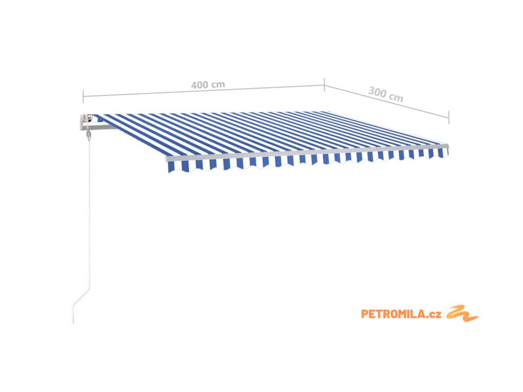 Ručně zatahovací markýza s LED světlem 4 x 3 m modrobílá