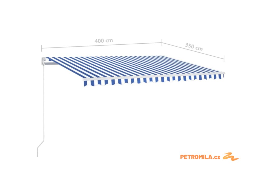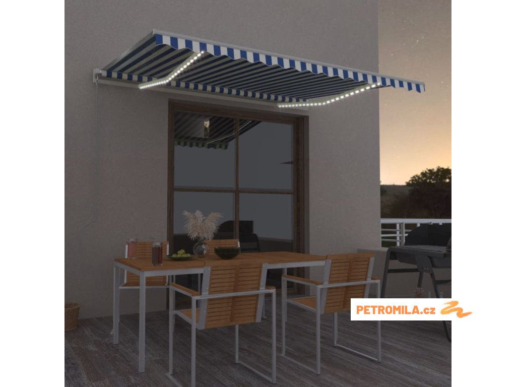 Ručně zatahovací markýza s LED světlem 400 x 350 cm modrobílá