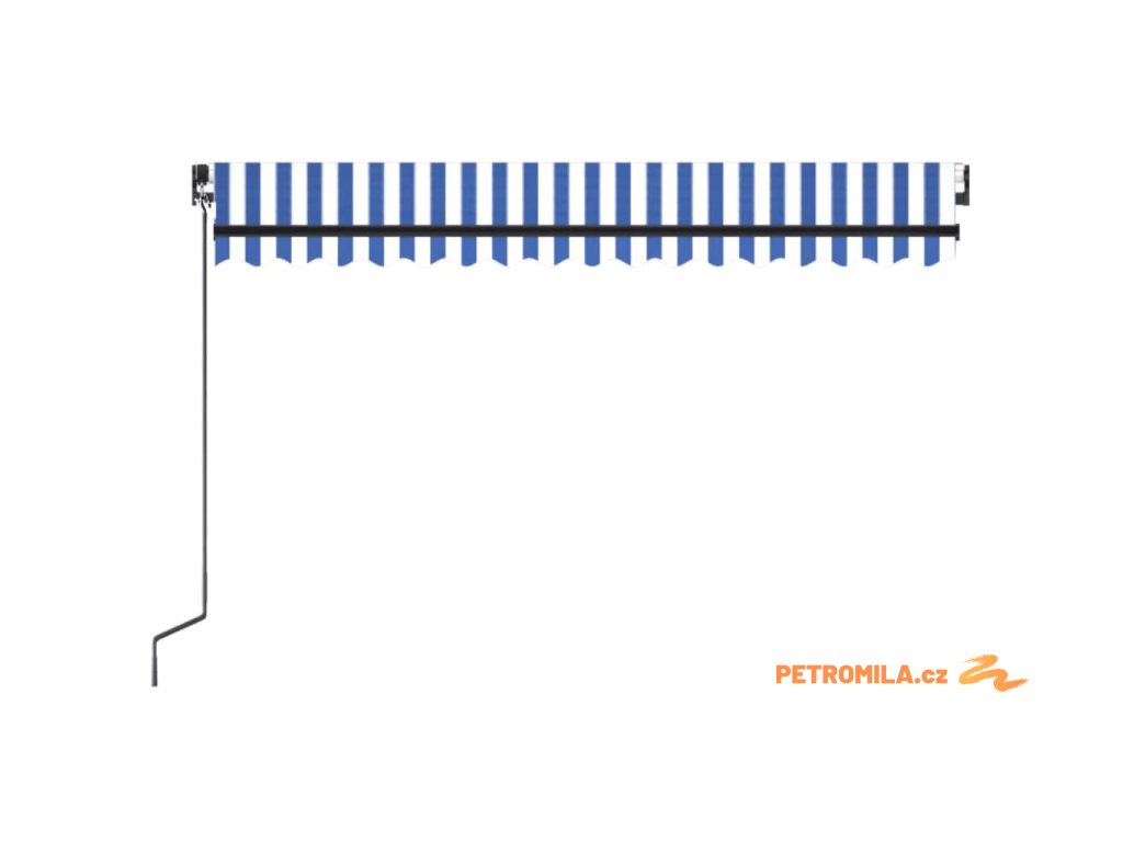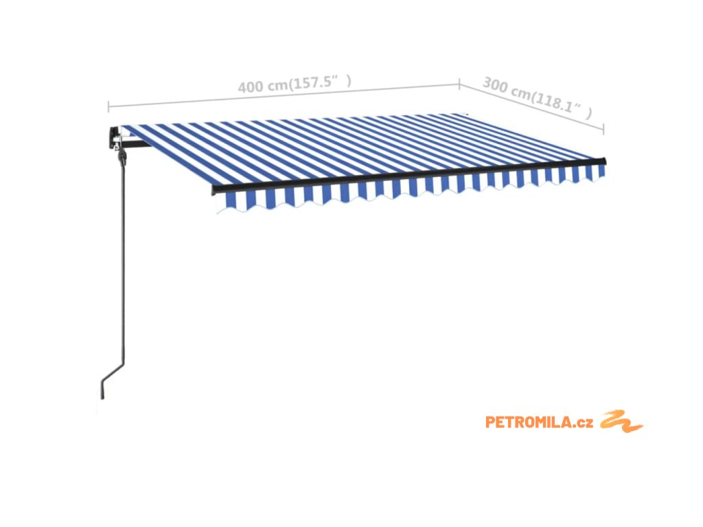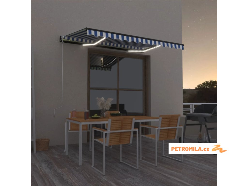 Ručně zatahovací markýza s LED světlem 400x300 cm modrá a bílá