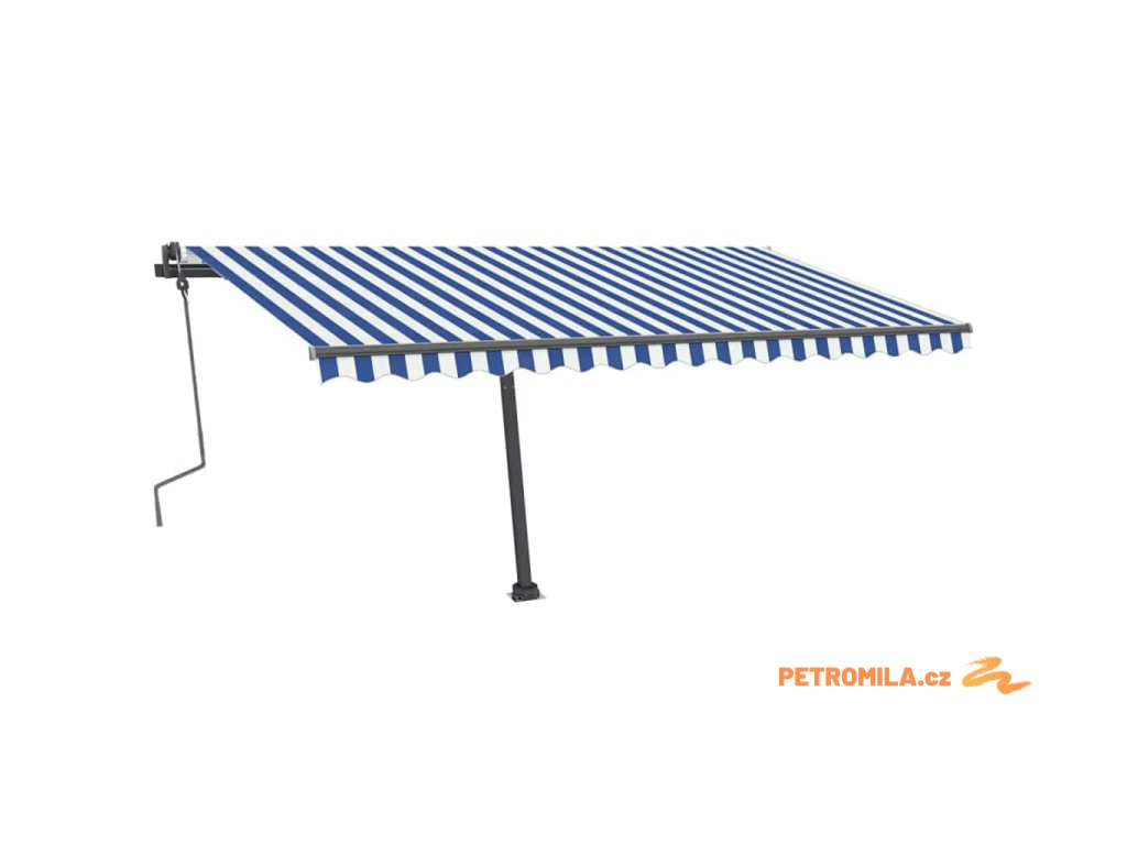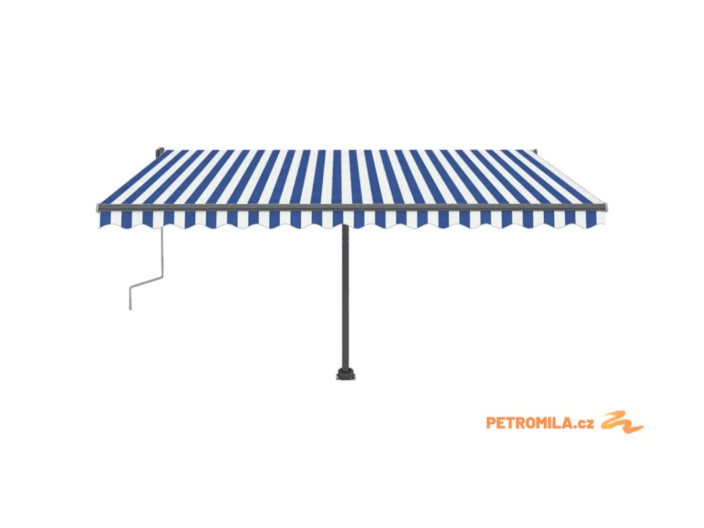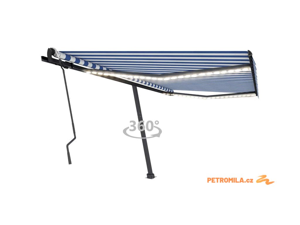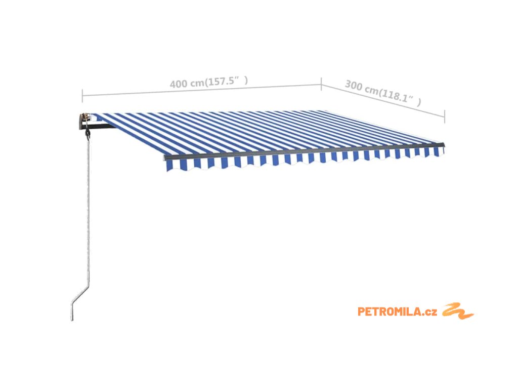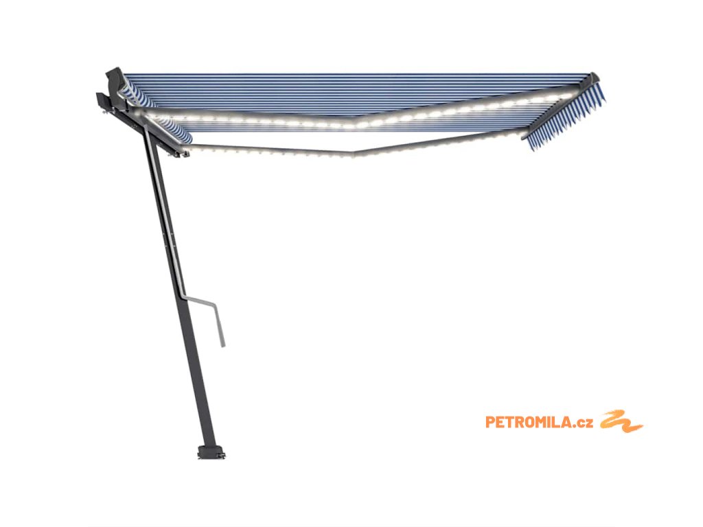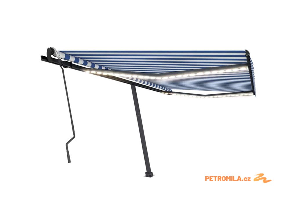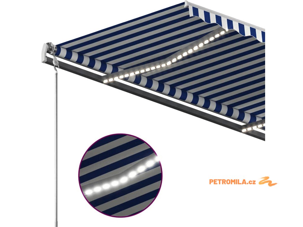 Ručně zatahovací markýza s LED světlem 400x300 cm modrá a bílá