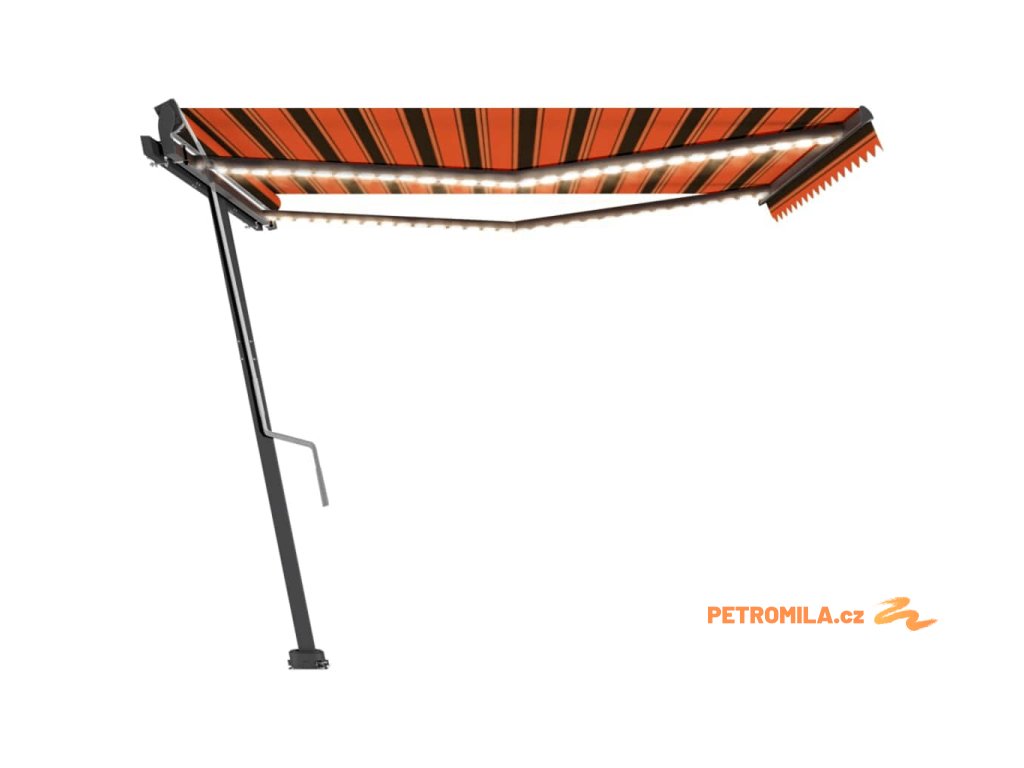 Ručně zatahovací markýza s LED světlem 400x300 cm oranžovohnědá