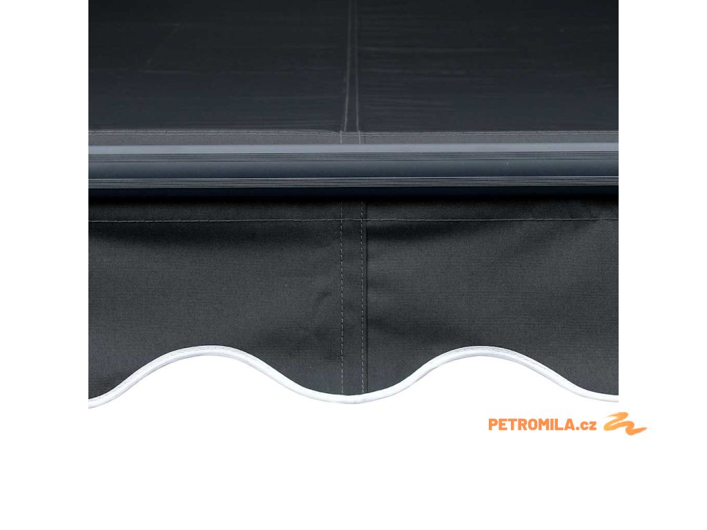 Zahradní markýza má hliníkový rám s práškovým nástřikem, který nerezaví, je lehký, ale přitom tvoří velice pevnou konstrukci. Do jisté míry dokáže odolávat i větru. Zatahovací stříška je zhotovená z vysokohustotního polyesteru potaženého vrstvou PU, výborně tedy vzdoruje vodě i UV záření a nebledne. Úhel a výšku si můžete nastavit dle svých konkrétních potřeb. Markýzu snadno roztáhnete a zatáhnete pomocí dlouhé ruční kliky. K ramenu jsou navíc připevněná solární energie napájená LED světla, která v noci vyzařují energeticky úsporné osvětlení.