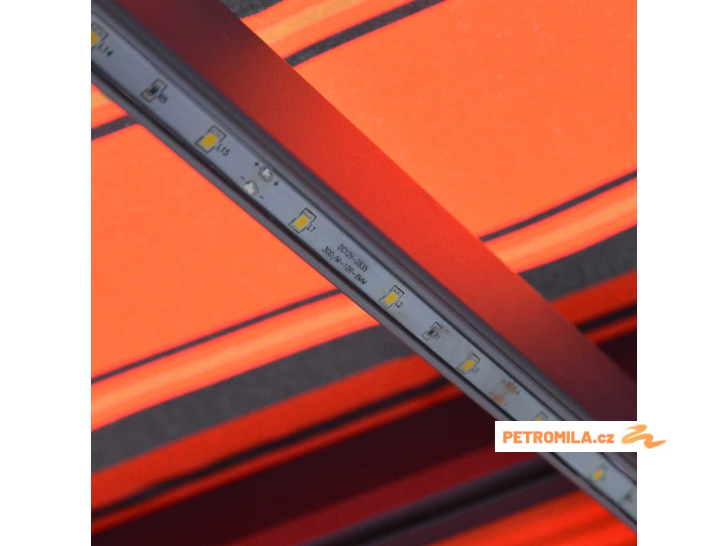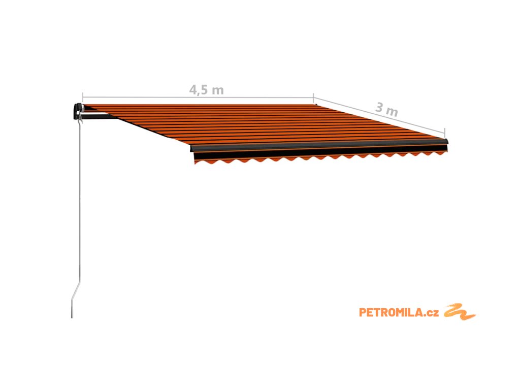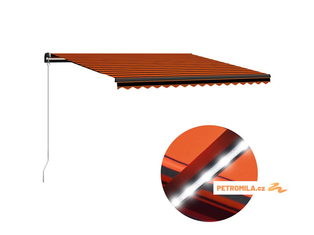 Ručně zatahovací markýza s LED světlem 450x300 cm oranžovohnědá
