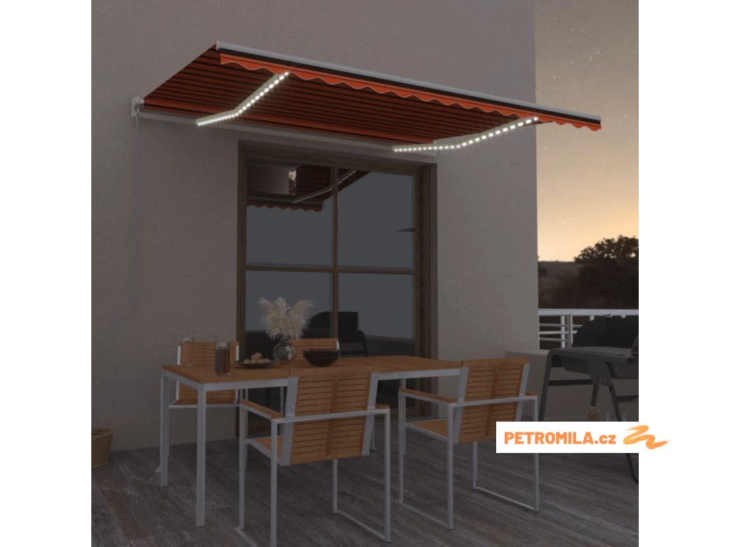 Ručně zatahovací markýza s LED světlem 450x300 cm oranžovohnědá