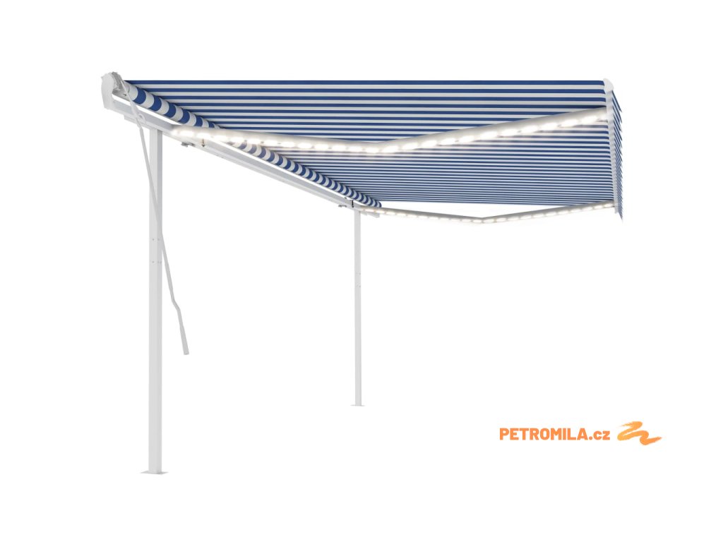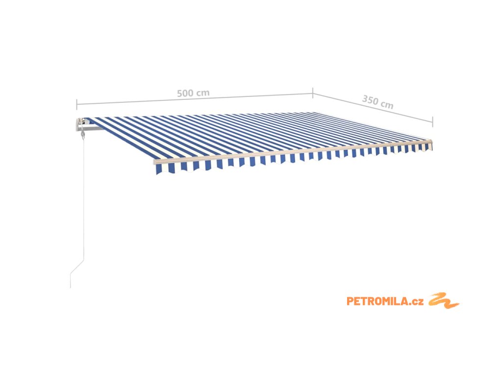 Ručně zatahovací markýza s LED světlem 5 x 3,5 m modrobílá