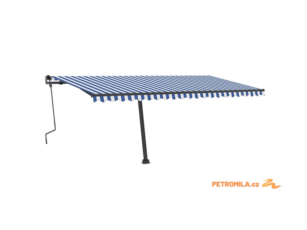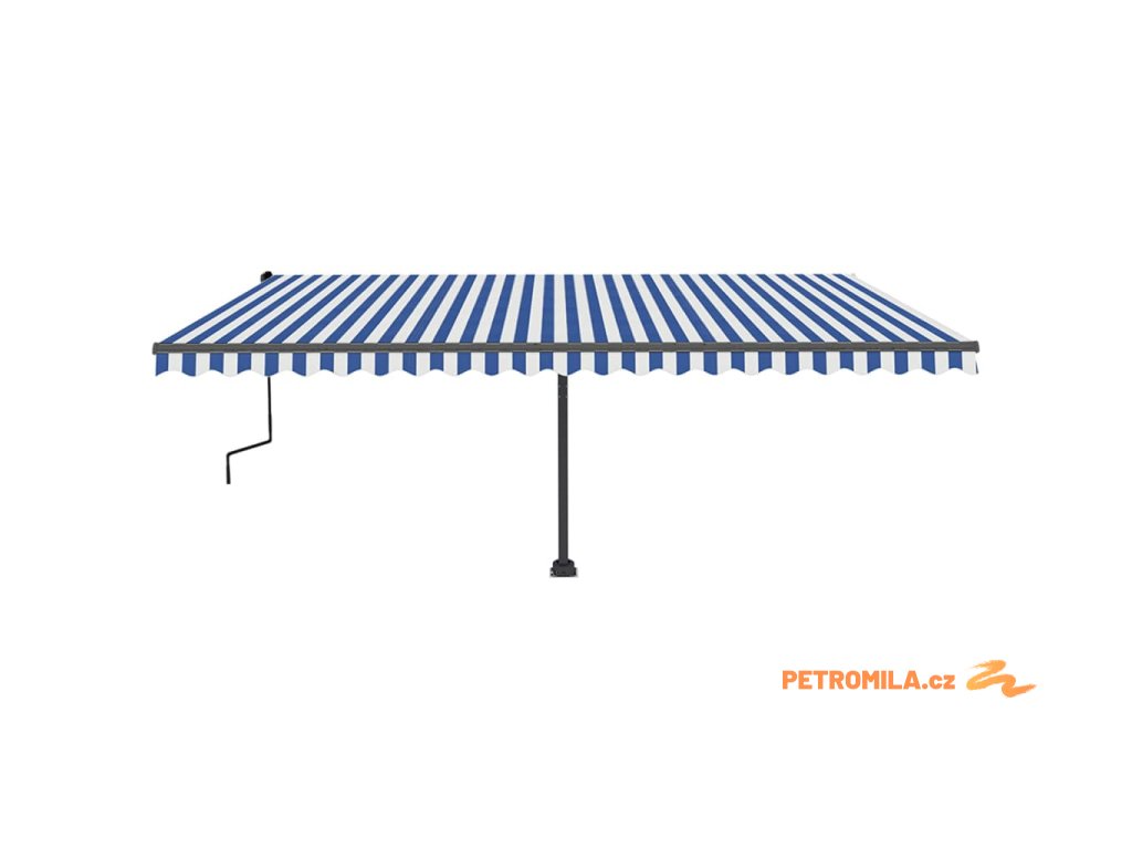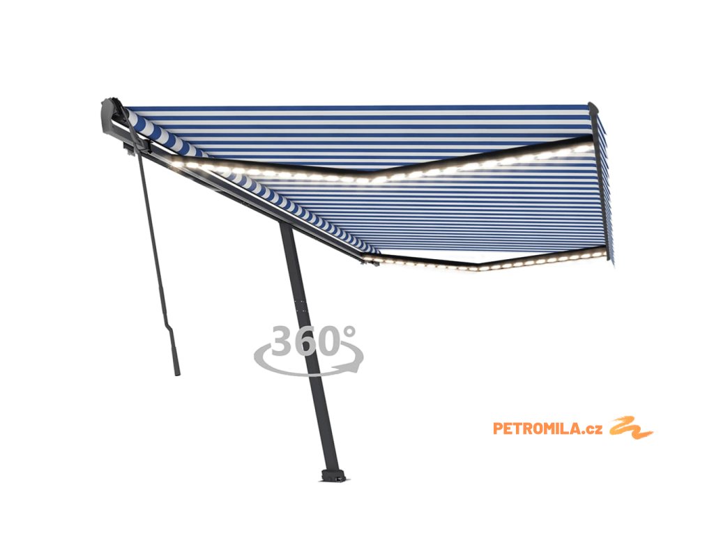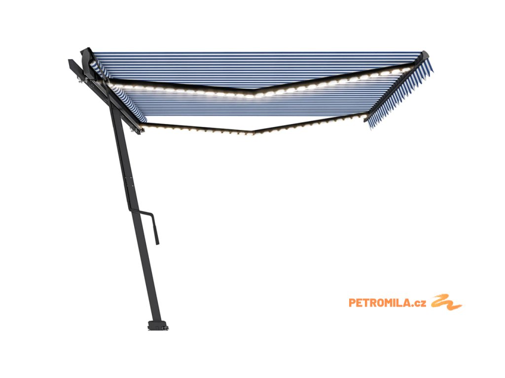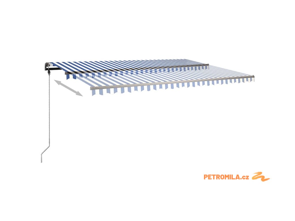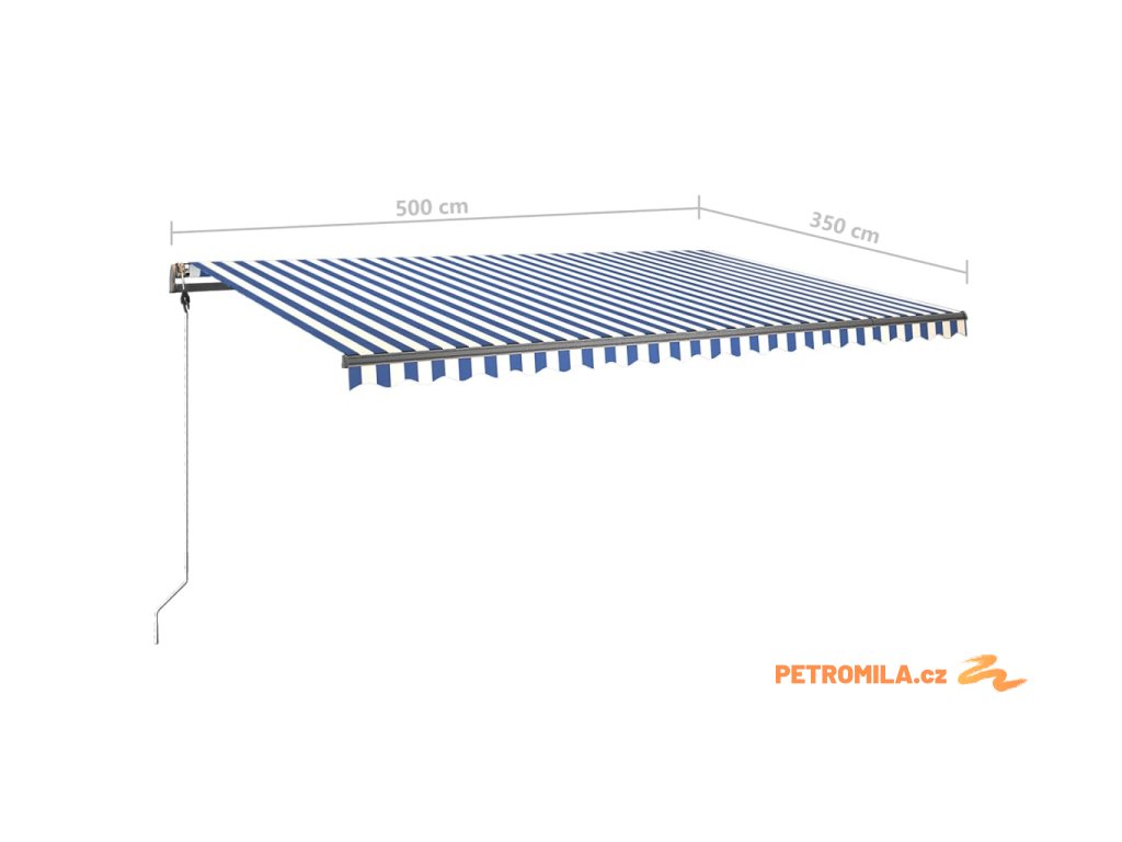 Ručně zatahovací markýza s LED světlem 500 x 350 cm modrobílá