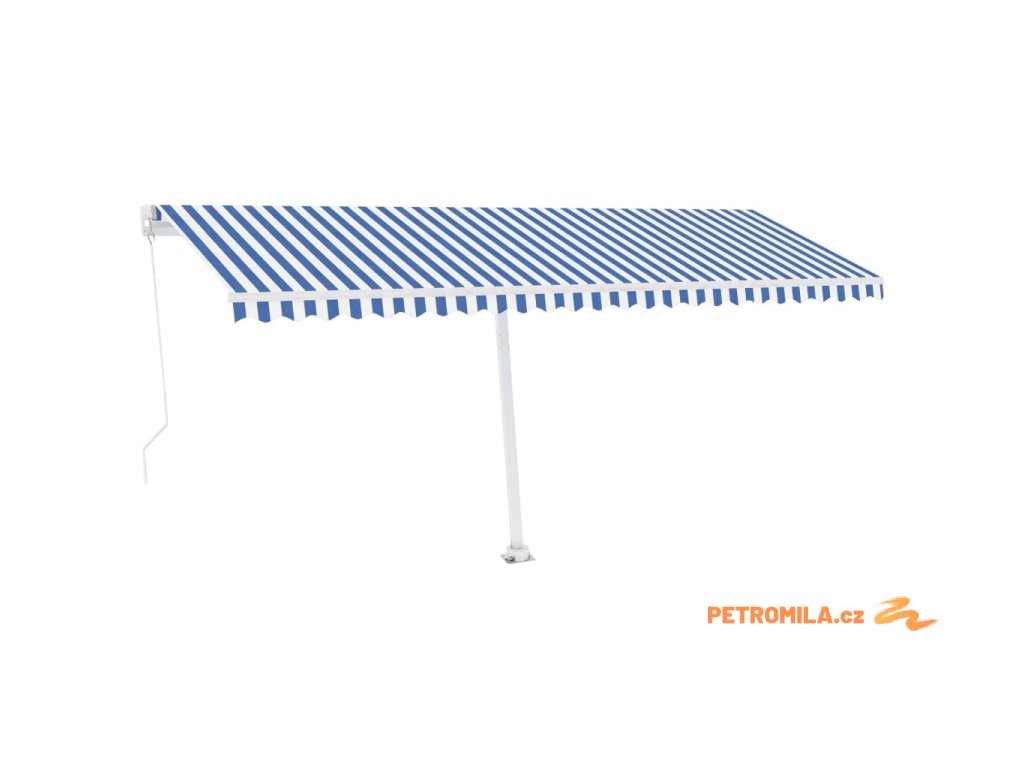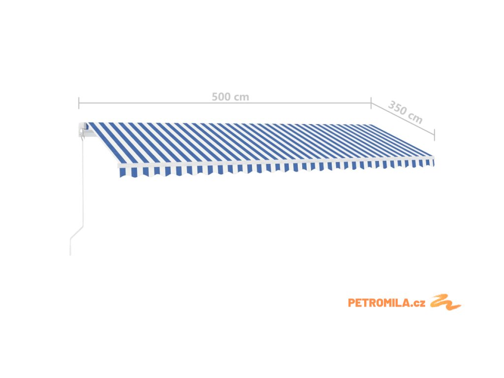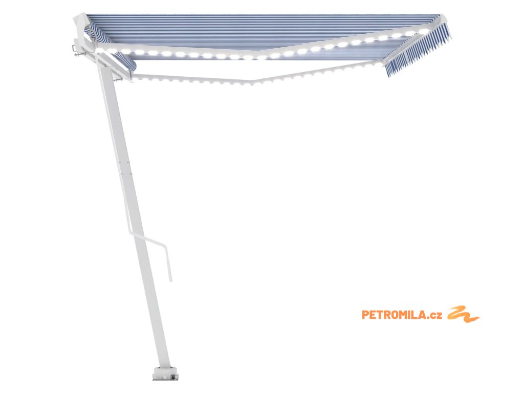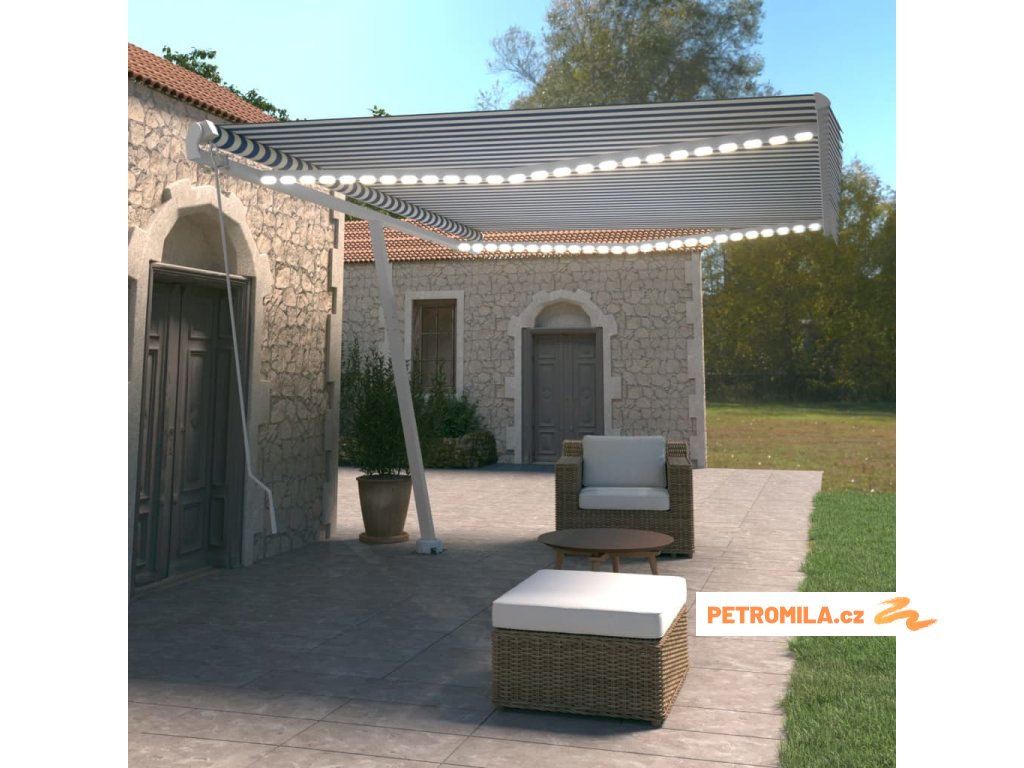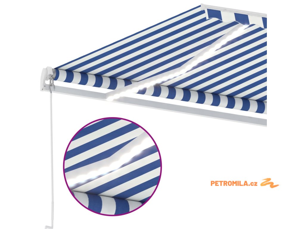 Ručně zatahovací markýza s LED světlem 500 x 350 cm modrobílá