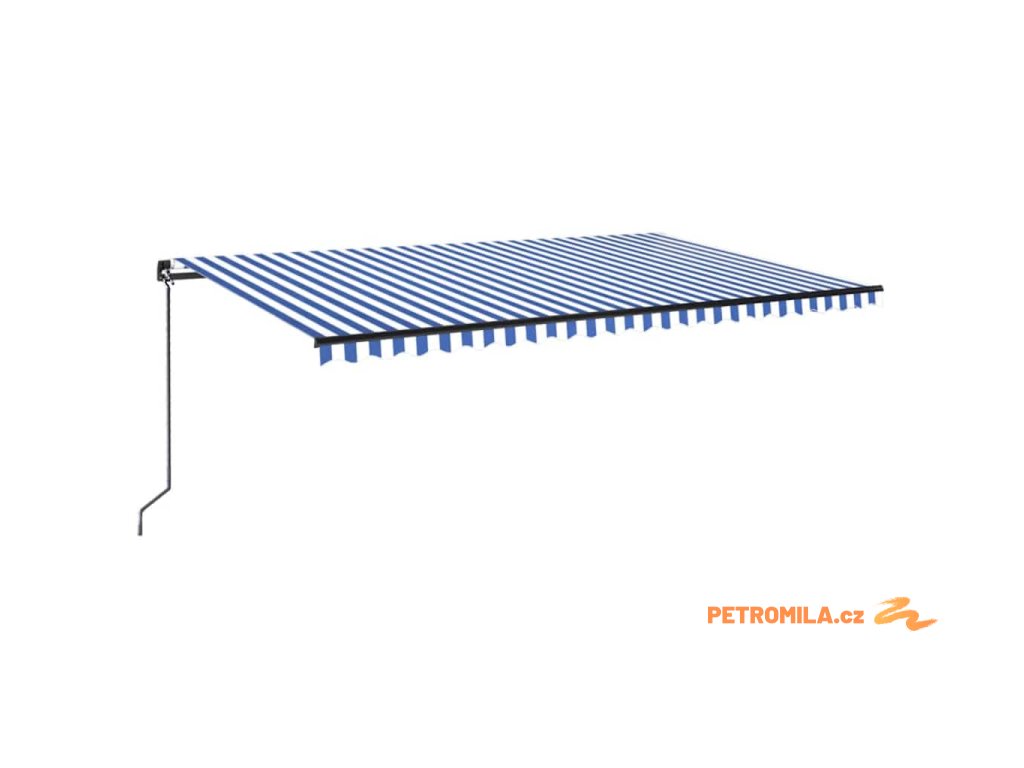 Ručně zatahovací markýza s LED světlem 500x300 cm modrá a bílá