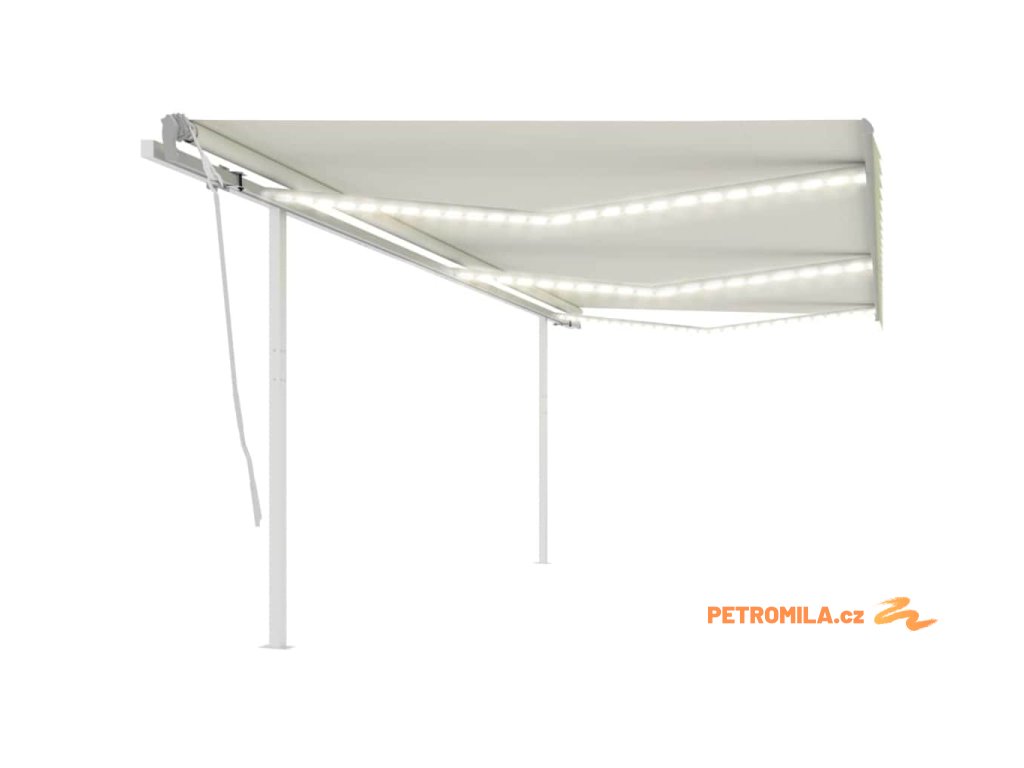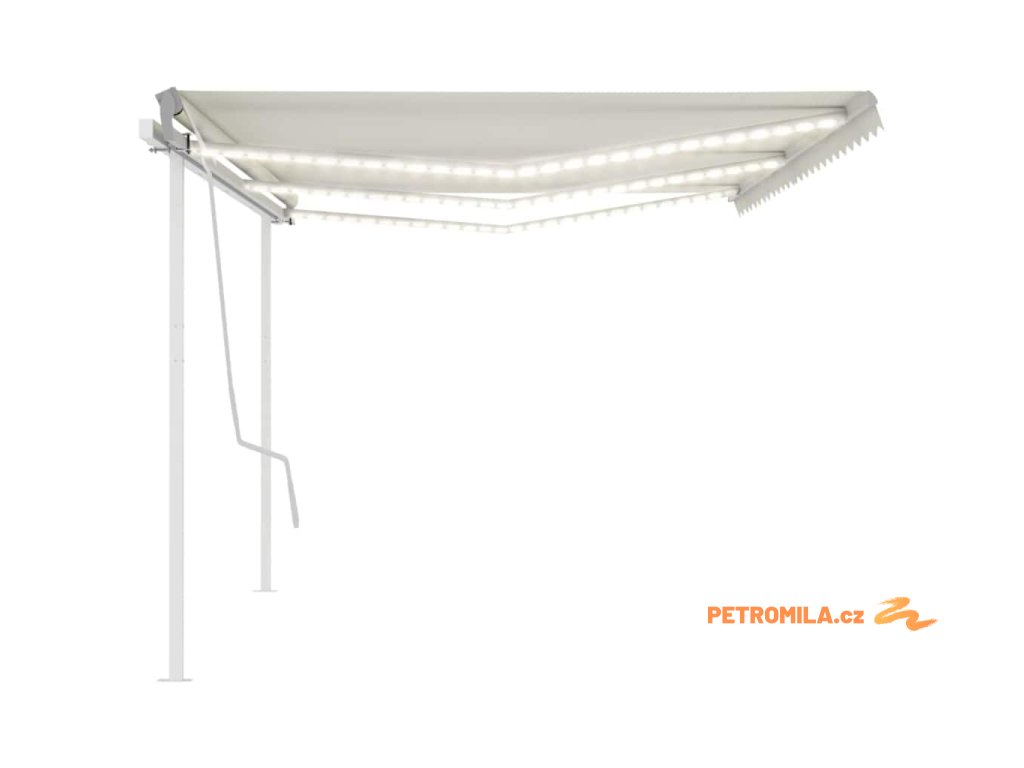 Zahradní markýza má práškově lakovaný hliníkový rám, který nerezaví, je lehký, a přitom tvoří velice pevnou konstrukci. Robustní železné sloupky jí přidávají na stabilitě. Zatahovací stříška je zhotovená z vysokohustotního polyesteru potaženého vrstvou PU, výborně tedy vzdoruje vodě i UV záření. Úhel a výšku si můžete navíc nastavit dle svých konkrétních potřeb. Markýzu snadno roztáhnete a zatáhnete pomocí dlouhé ruční kliky. A co víc, solární LED světla poskytují energeticky úsporné osvětlení v noci.