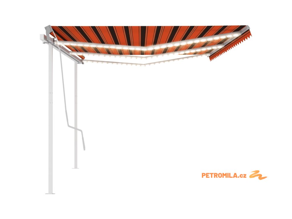 Ručně zatahovací markýza s LED světlem 6 x 3 m oranžovo-hnědá