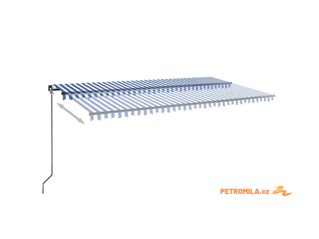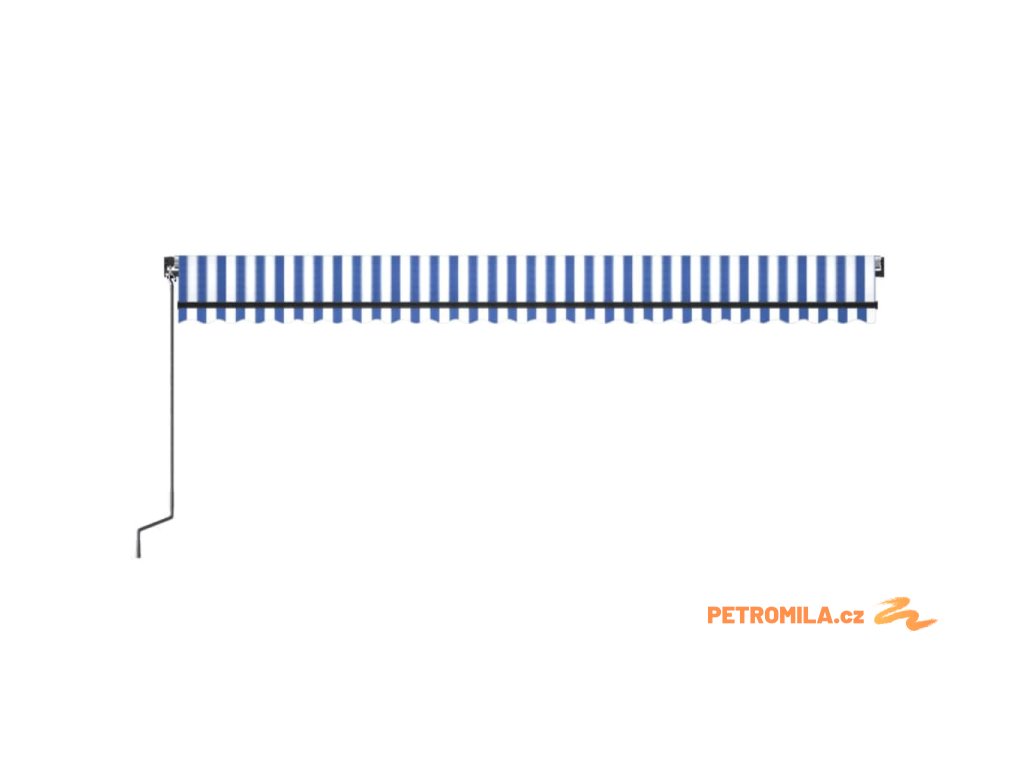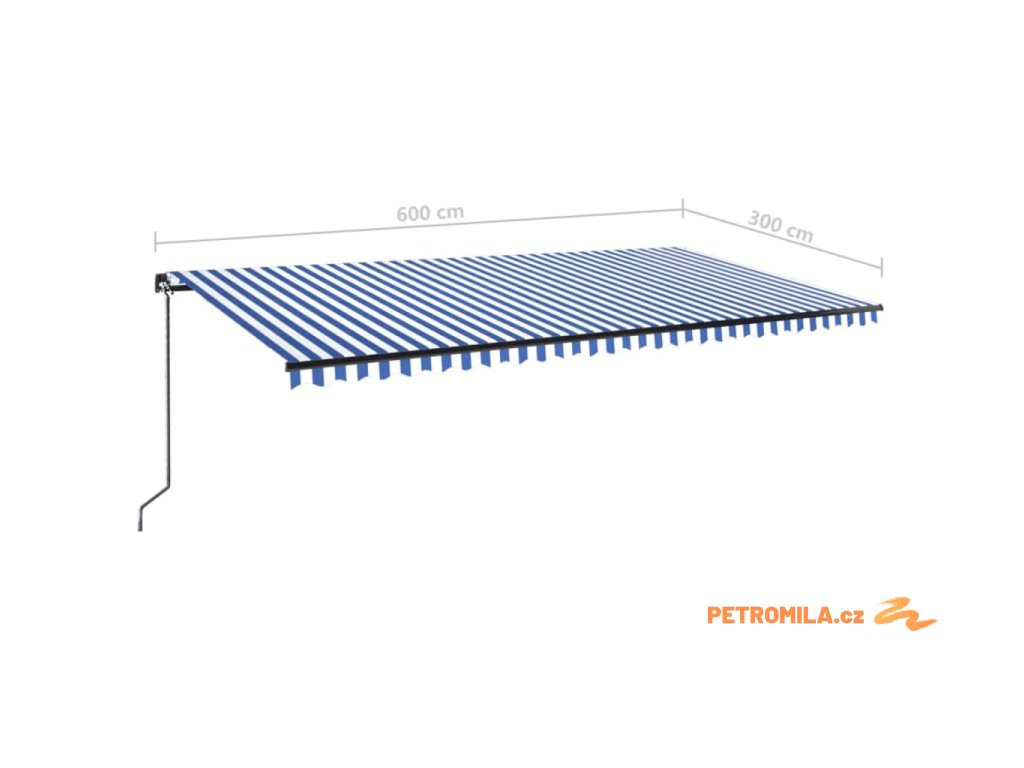 Ručně zatahovací markýza s LED světlem 600 x 300 cm modrobílá