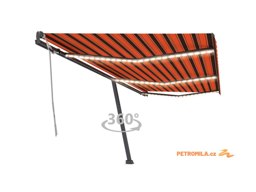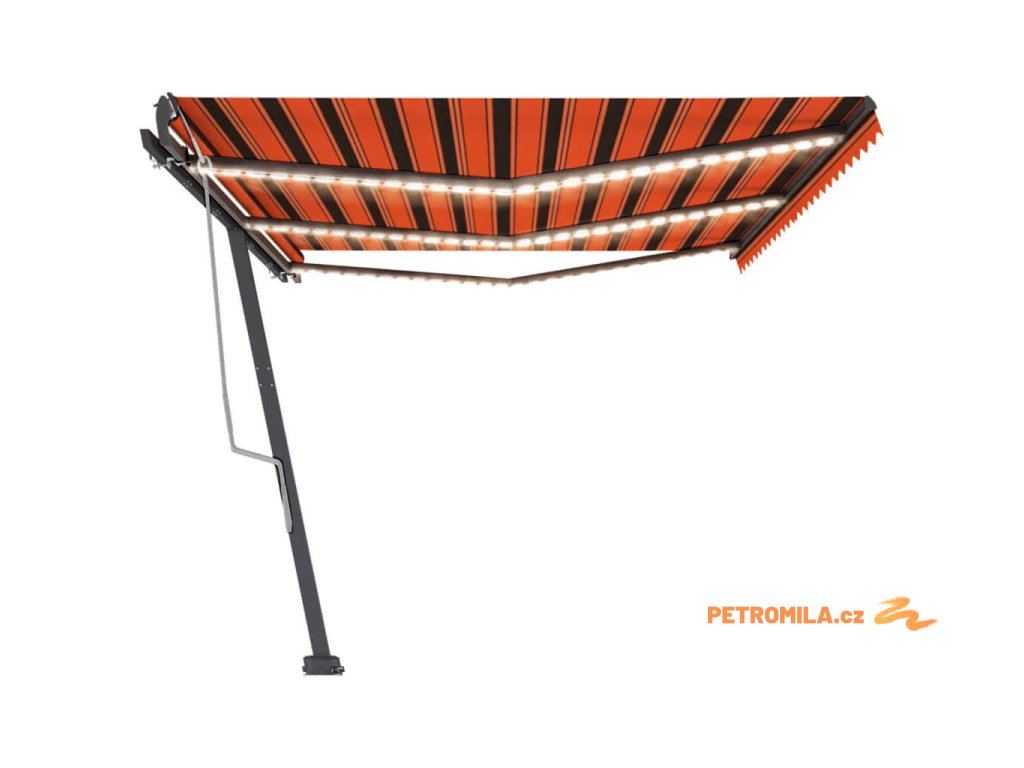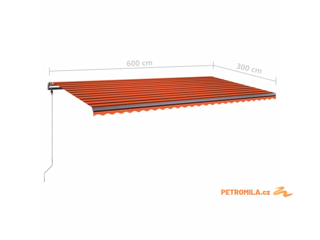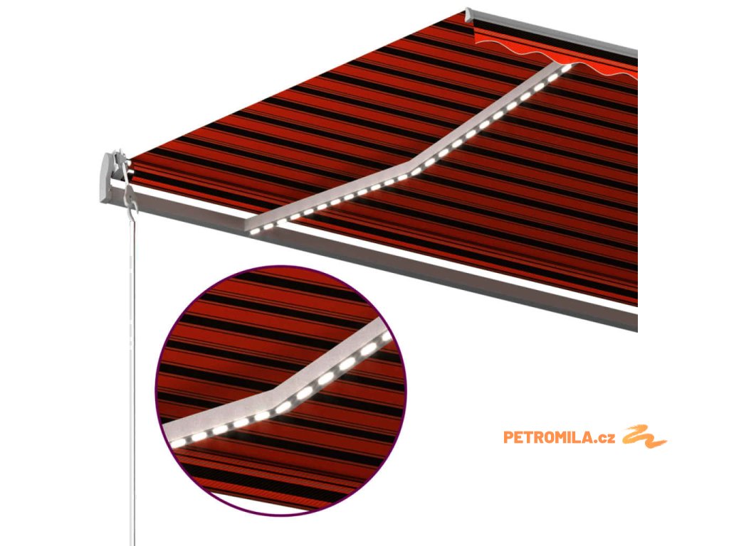 Ručně zatahovací markýza s LED světlem 600x300 cm oranžovohnědá