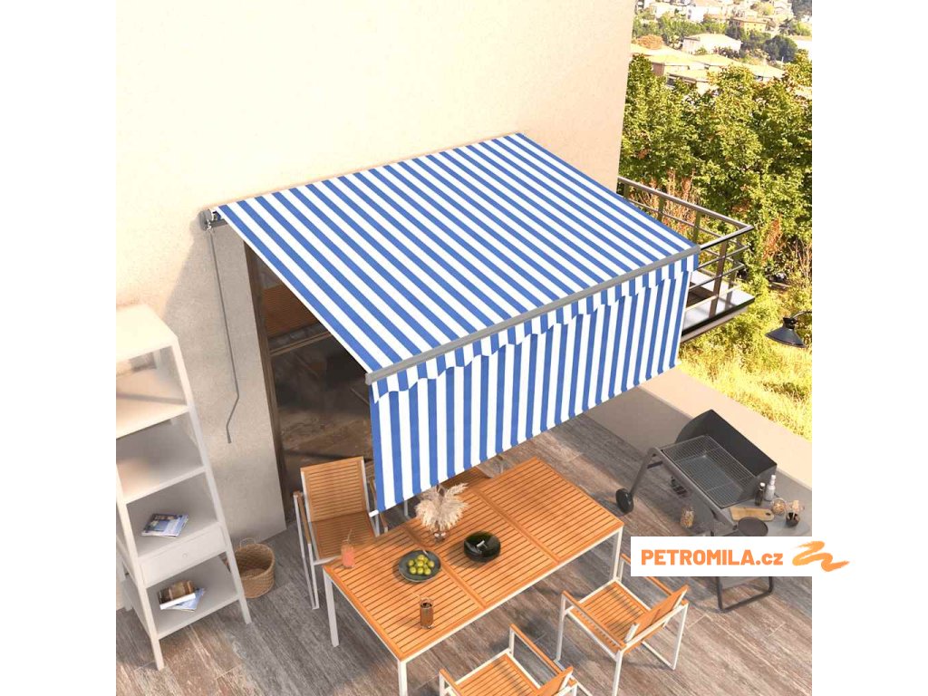 Ručně zatahovací markýza s roletou 3,5 x 2,5 m modrobílá
