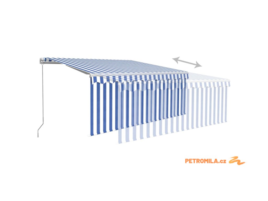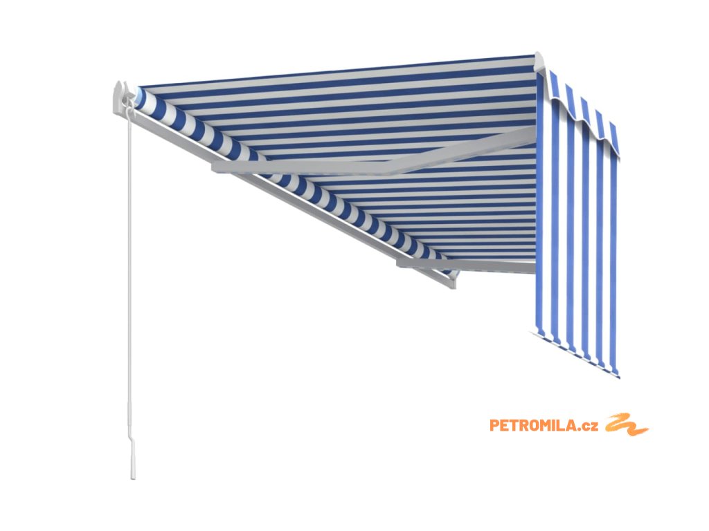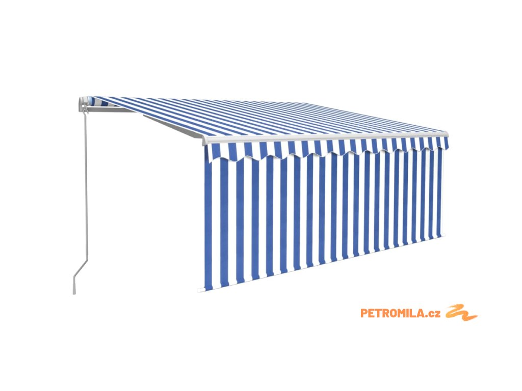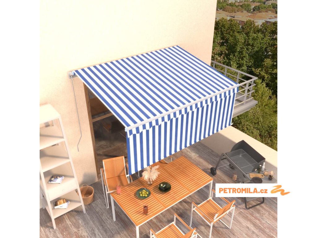 Ručně zatahovací markýza s roletou 3,5 x 2,5 m modrobílá