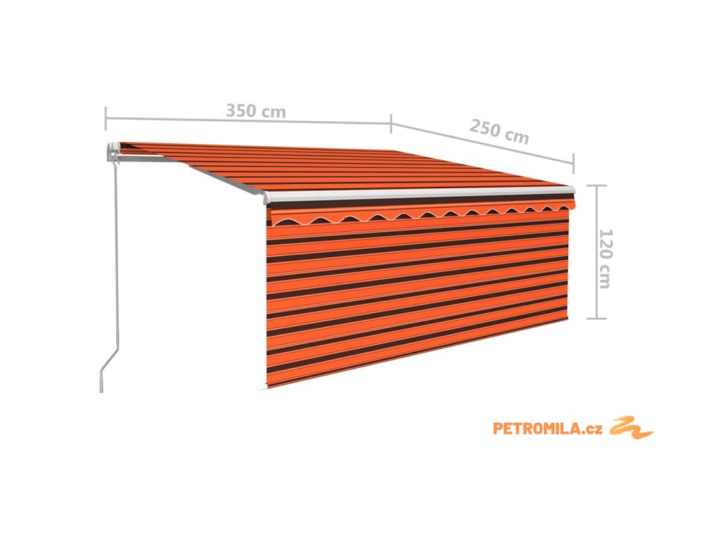 Ručně zatahovací markýza s roletou 3,5 x 2,5 m oranžovo-hnědá