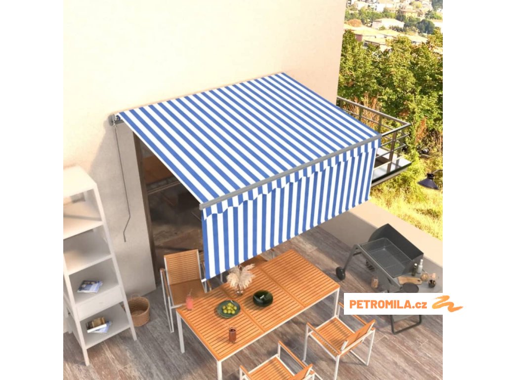Ručně zatahovací markýza s roletou 3 x 2,5 m modrobílá