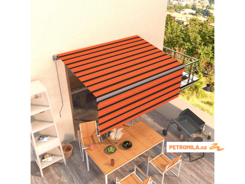 Ručně zatahovací markýza s roletou 3 x 2,5 m oranžovo-hnědá
