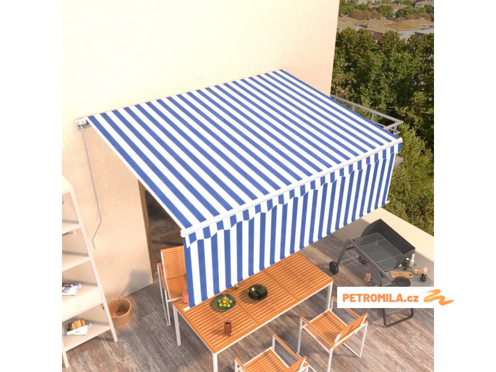Ručně zatahovací markýza s roletou 4,5 x 3 m modrobílá