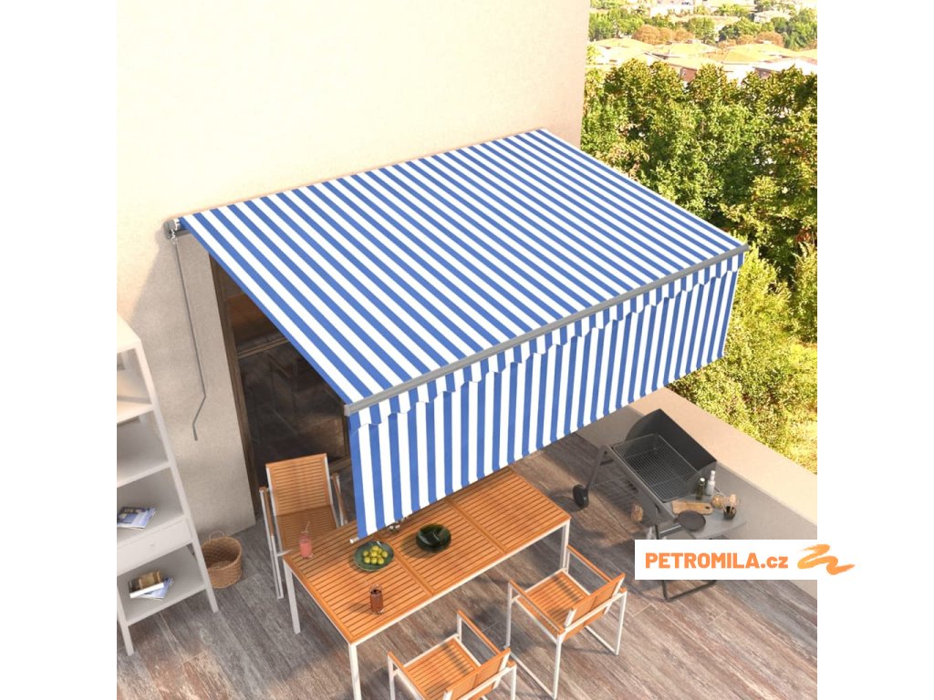 Ručně zatahovací markýza s roletou 4 x 3 m modrobílá
