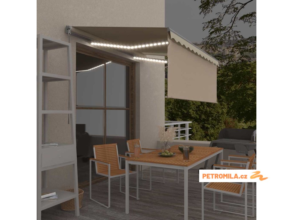 Ručně zatahovací markýza s roletou a LED 3,5 x 2,5 m krémová