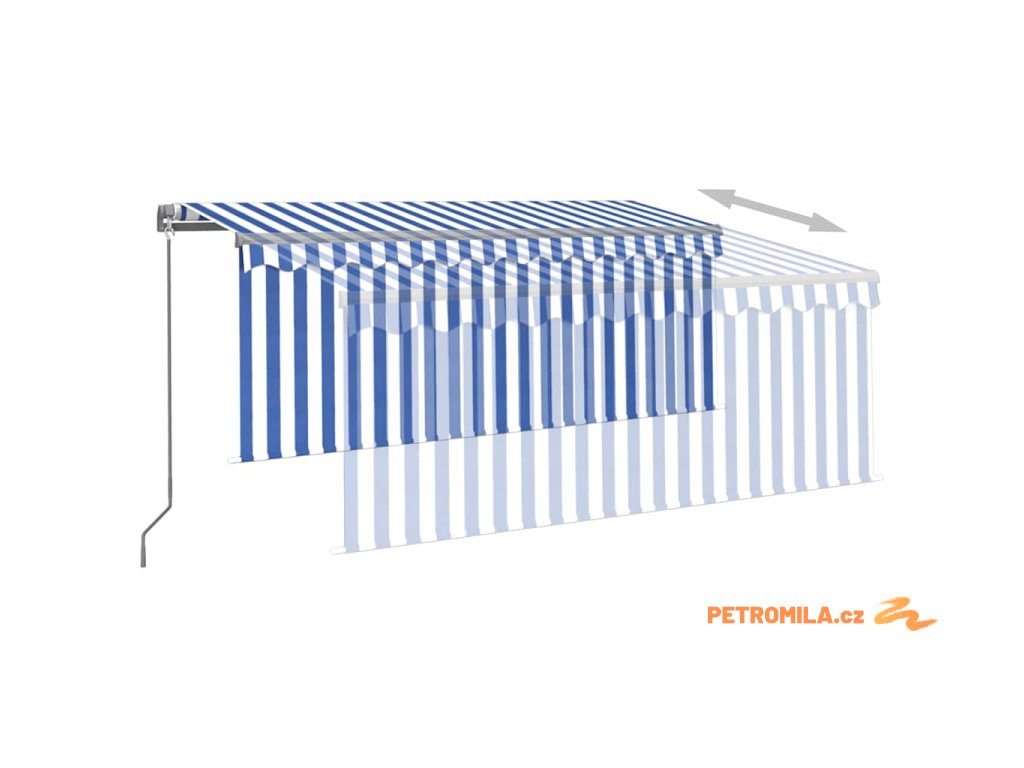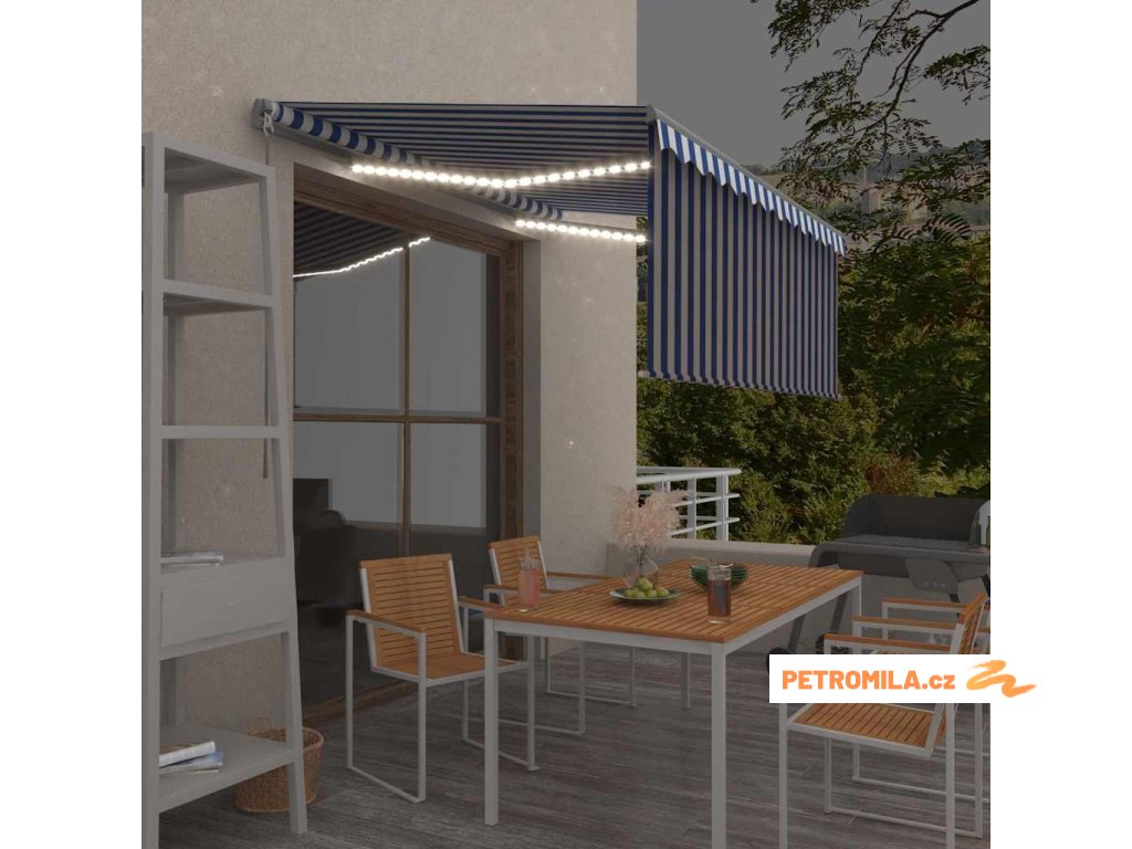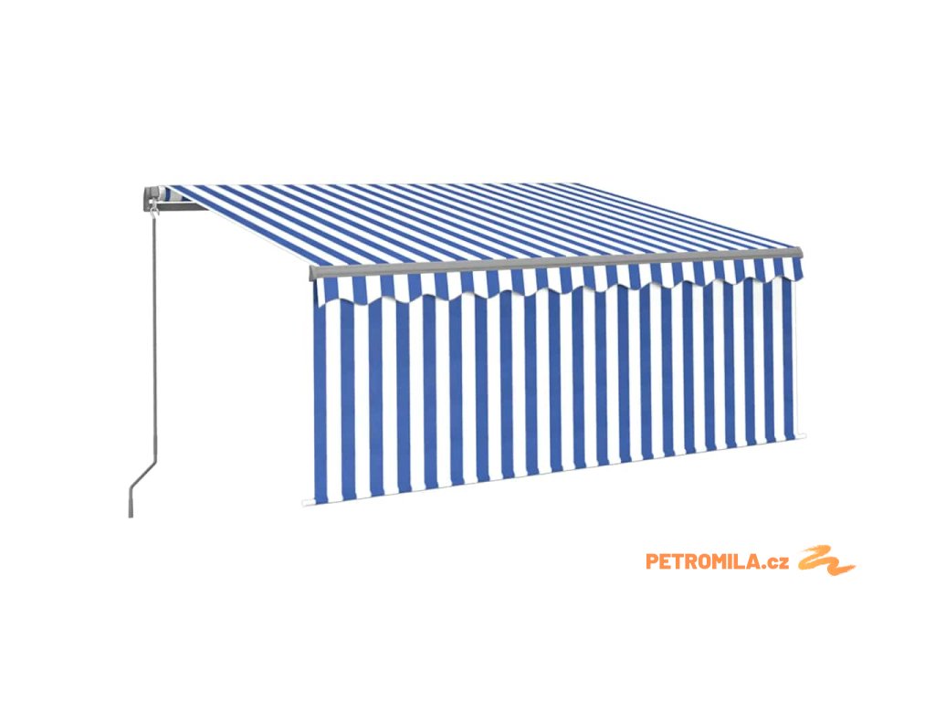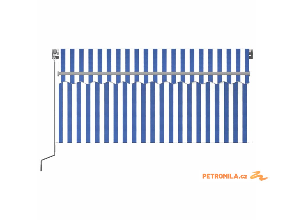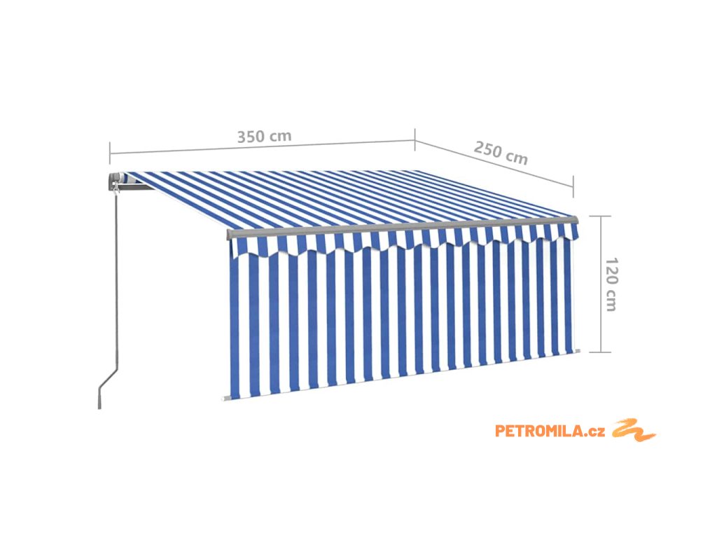Ručně zatahovací markýza s roletou a LED 3,5 x 2,5 m modrobílá