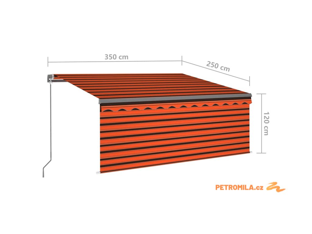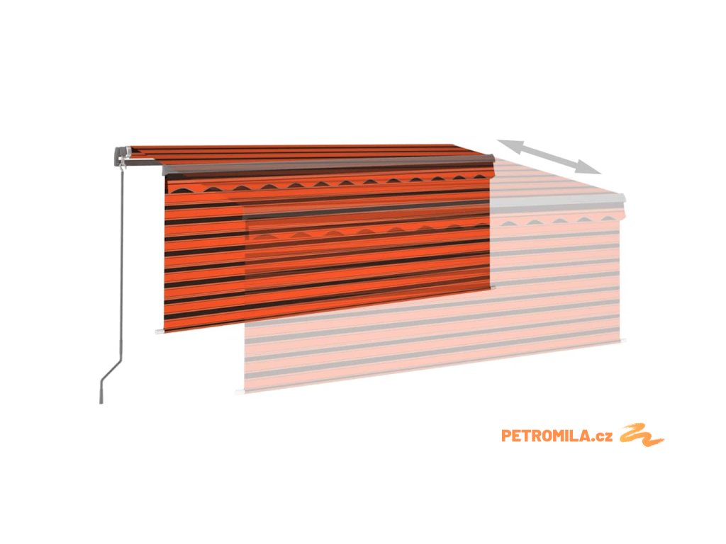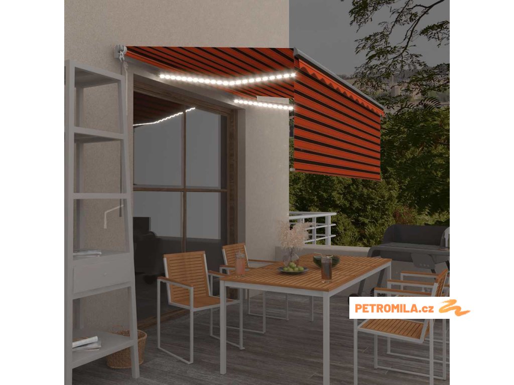 Ručně zatahovací markýza s roletou a LED 3,5x2,5m oranžovohnědá