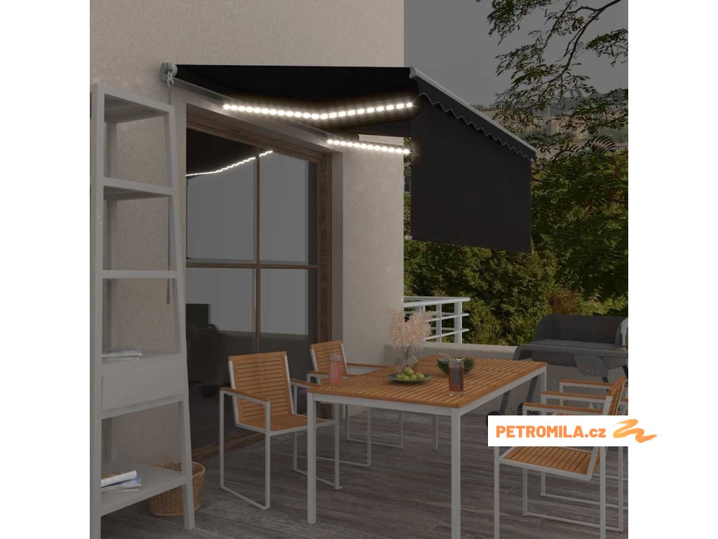 Ručně zatahovací markýza s roletou a LED 3 x 2,5 m antracitová