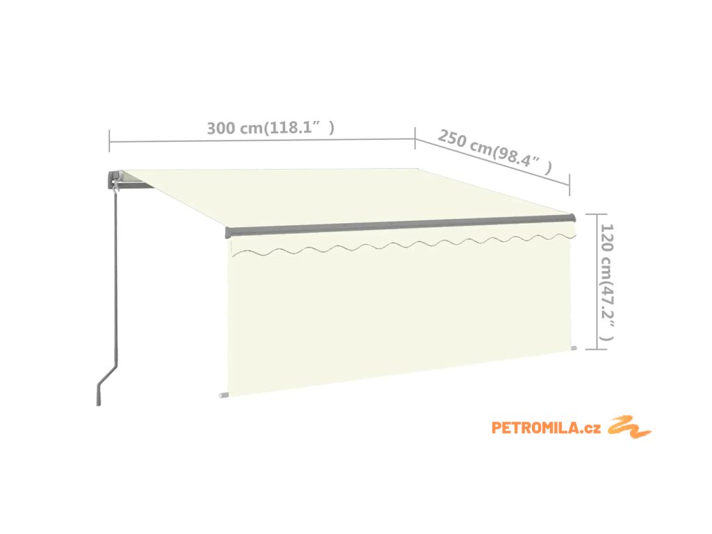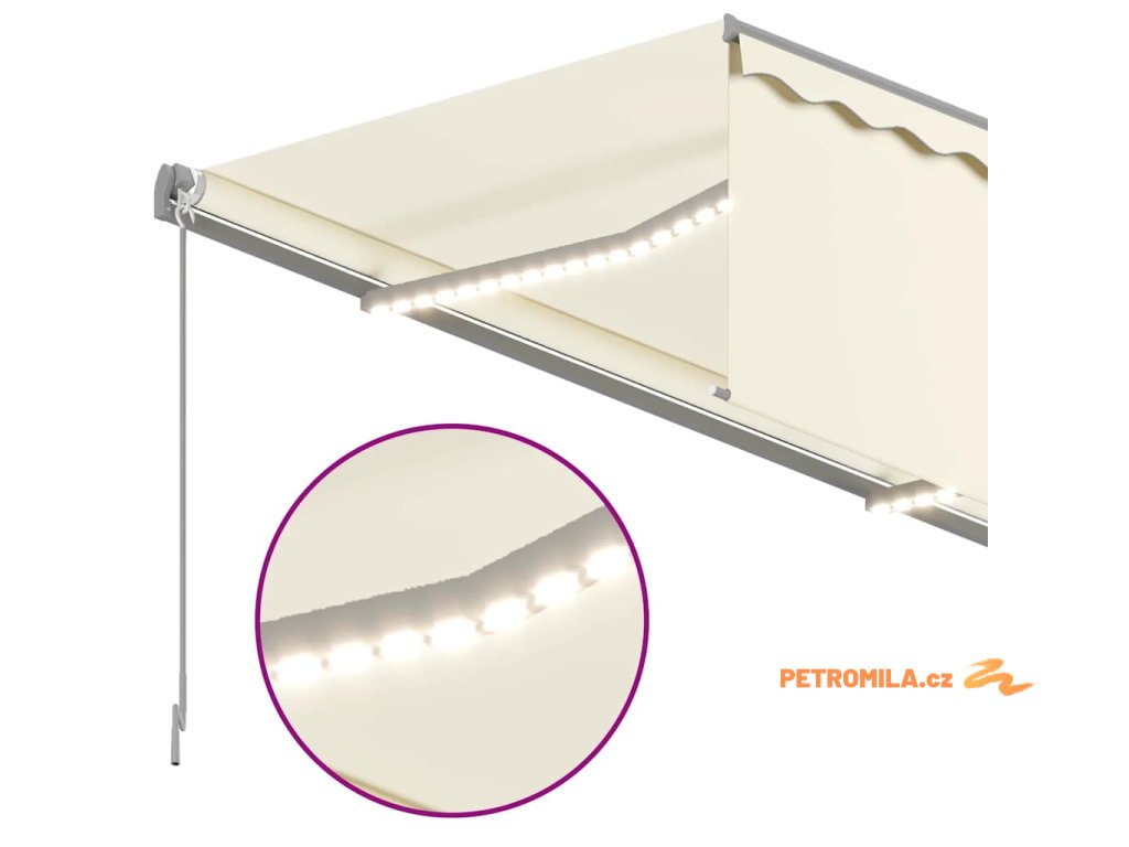 Ručně zatahovací markýza s roletou a LED 3 x 2,5 m krémová