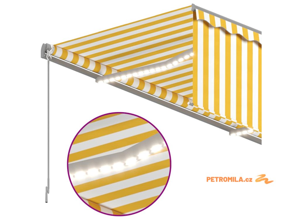 Ručně zatahovací markýza s roletou a LED 3 x 2,5 m žlutobílá