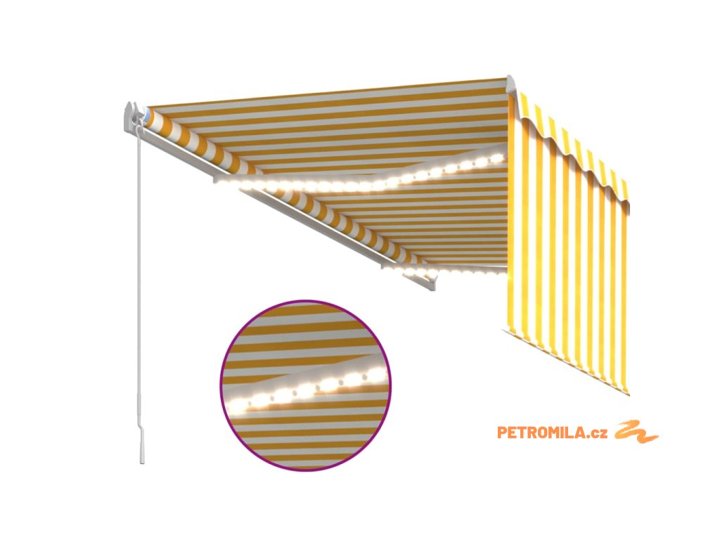 Ručně zatahovací markýza s roletou a LED 3 x 2,5 m žlutobílá